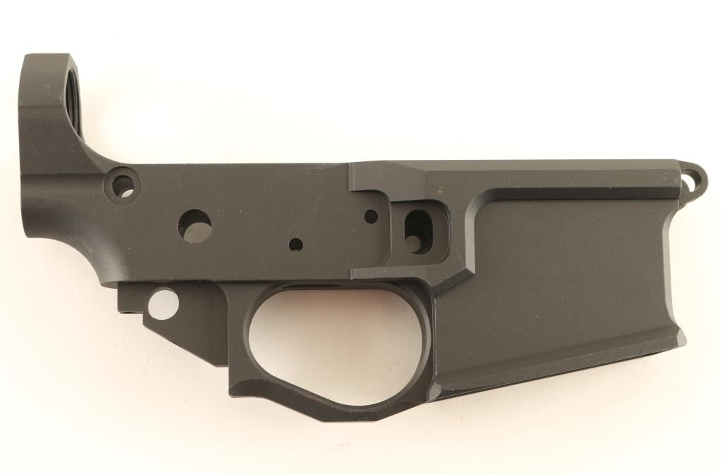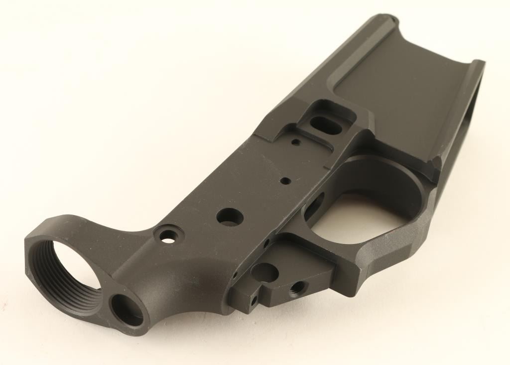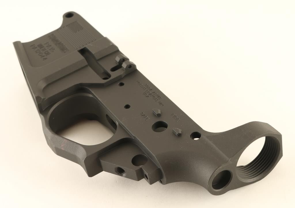 Features billet construction with contoured lines, large integral trigger guard and flared/beveled magazine well. Finished in matte black with the American flag engraved on the right side. Condition is NRA Perfect in box. ***Modern Firearm***