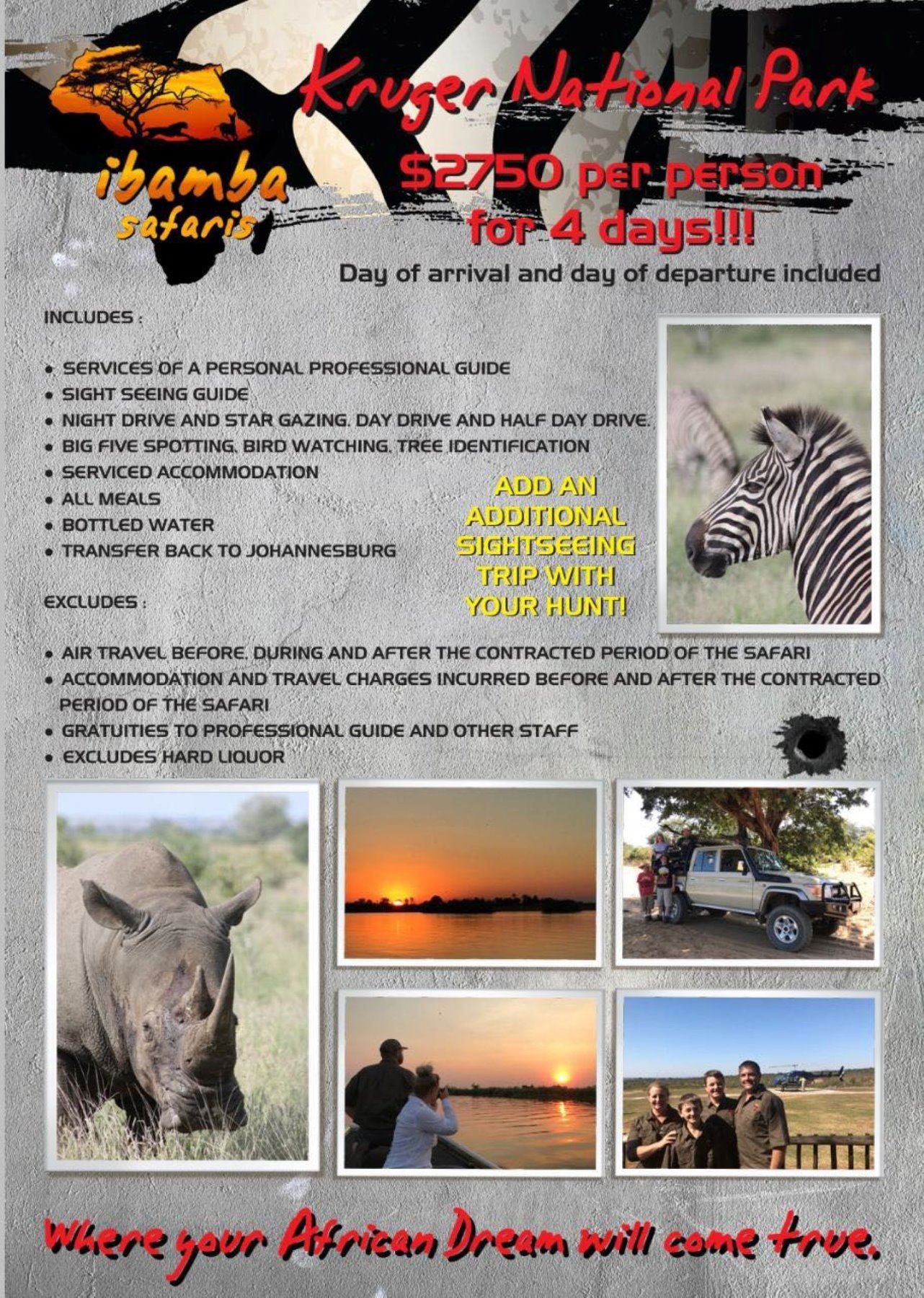 For more information, contact Johan Pretorius at +27832261690 or by email: johan@ibambasafaris.com Company's website:http://www.ibambasafaris.com/index.html