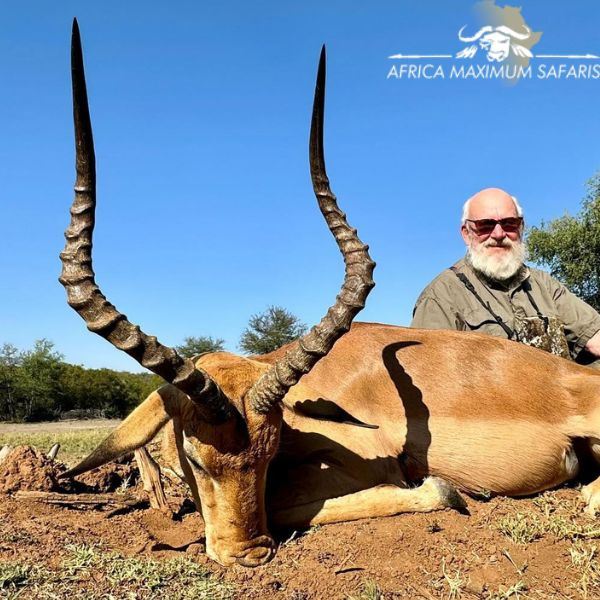 Join our friends at Africa Maximum Safaris for 5 trophy animals shared with 2 hunters. This donation is for two hunters on a two on one hunt and two observers. Trophy animals donated are one of each species to be shared by the hunters. The package includes 5 species: Blue or Black Wildebeest x 1, Red Hartebeest or Burchelle Zebra x 1, Impala x 1, Blesbuck x 1 and Springbuck x 1. The hunting season is from 1st of February 2026 to 30 November of 2026 or 2027. The donation is for 8 hunting days, and hunters will be hosted at Africa Maximum safaris luxury lodge. The eight hunting days will be on concessions of Africa Maximum Safaris in the North West Province of South Africa. We have over 300,000 acres of combined concessions to hunt. The Northwest Province hosts an array of different species of game. If trophies are taken early, the clients will not be required to suspend the duration of days donated for hunting. The hunt may be upgraded, with extra hunters or observers at normal rates (as per the price list), extra trophies to be hunted, or extra days booked either on hunting or touring, as the client wishes to tailor the package. This hunt is available for the 2026 or 2027 season. Contact the outfitter for the best available dates. Included in the donation is field preparation of trophies; dipping and shipping are not included in the donation. The arrival and departure point will be Johannesburg OR Tambo International Airport. Airport transfer to and from the Africa Maximum Safaris lodge is at an additional cost of $ 890 for the group of 4 people. No permit drawing or lottery is required for this hunt. Weapons to be used: Rifle only – 375 for dangerous game and 30 caliber and bigger for plains game. The limitation on the ammunition is 200 rounds per gun. Rifles can also be rented from Africa Maximum Safaris. To bring weapons into South Africa, an export permit from the United States is required. At South African Customs, the gun owner will supply the necessary import permit, on which a temporary firearm license will be issued. For additional information contact Jaques Senekal at africamaximum@gmail.com.