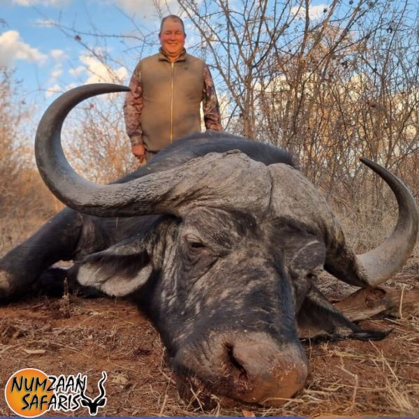 This hunt includes the trophy fee for a Cape Buffalo up to 42"- a buffalo over 42" can be upgraded for an additional $2,000. This donation can be upgraded to include more hunters ($350/day), non-hunters ($150/day), and days, and species all per the current pricelist with the outfitter. Rifles and ammo are available to rent from Numzaan at a minimal cost. Hunt arrival and departure point is Johannesburg, Oliver Tambo International Airport. Included in this donation are transportation to and from the airport, all transportation during the safari, lodging, laundry, meals during the safari, and field prep including skinning, caping, and salting of trophies.