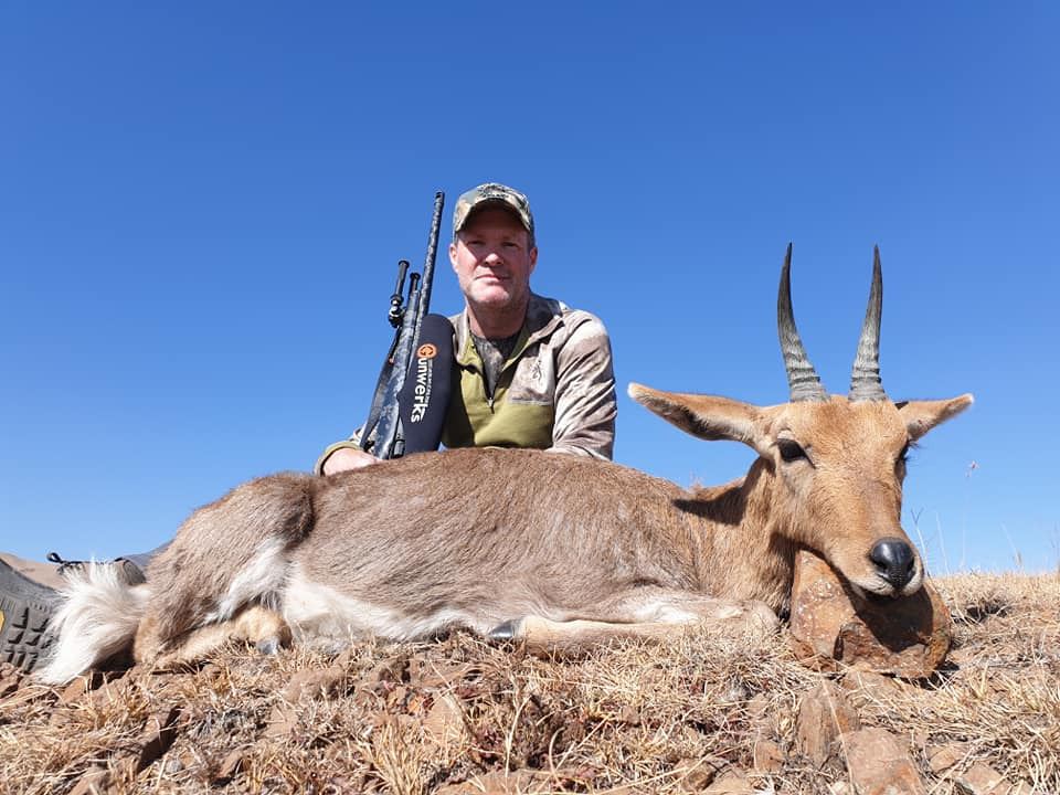 8 day (6 days hunting), 1 x 1 guided safari for 1 x Caracal, 1 x Mountain Reedbuck and 1 x Duiker for 1 hunter. Schedule trip between July to November 2020/2021. Includes lodging, meals, non-alcoholic and alcoholic beverages, as well as transport of trophies to shipper. Hunter may use rifle or bow. Donor must secure own weapons permit. Contact outfitter for available upgrades. Additional hunters ($350 per day) and observers ($180 per day) welcome. Extend your stay for $350 per day. Does not include trophy prep or accommodations before or after the hunt. Arrival and departure point is Johannesburg, South Africa.