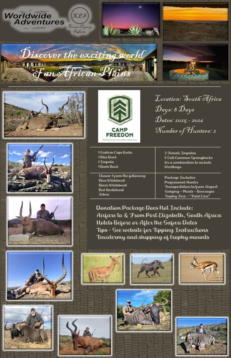 Hunts – Although CAMP FREEDOM has used its reasonable efforts to ensure the quality of donated hunts and trips, it has no control over the operation of the donor and cannot and does not guarantee that the hunt or trip will be to the Buyer’s satisfaction. The Buyer understands and agrees that it is his/her responsibility to make all arrangements for hunt or trip dates, including travel and completion and filing of all necessary documents, including applications for licenses and permits. CAMP FREEDOM cannot guarantee or warrant that a trophy animal or any animal will be taken during a hunt. Some hunts are subject to VAT and GST liabilities, which sometimes are due and payable before the hunt can be taken. Buyer understands and agrees that CAMP FREEDOM is not responsible for these fees and that it is Buyer’s responsibility to pay these fees unless other arrangements are made with donor.