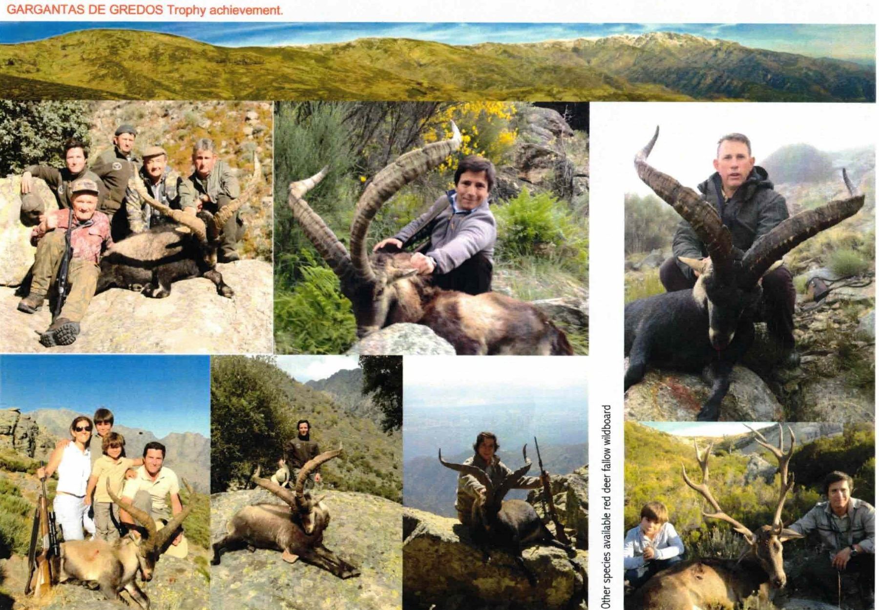 3-day Spain Hunt for 1 Hunter & 1 Observer, including trophy fee for one Gredos Ibex up to 205 CIC / 70 SCI. Hunt takes place on a unique private free range hunting estate of 5,000 hectares located in the heart of the cradle of the Spanish Ibex, managed by the same family that served King Alfonso XIII in the initial conservation of the Spanish Ibex back in the 1920's. Hunting is conducted the same way as done 100 years ago, namely spot-and-stalk conducted on foot and horseback adapted to pace of the hunter. Method of take is rifle. Arrival & Departure point is Barajas Intl Airport, Madrid, Spain.