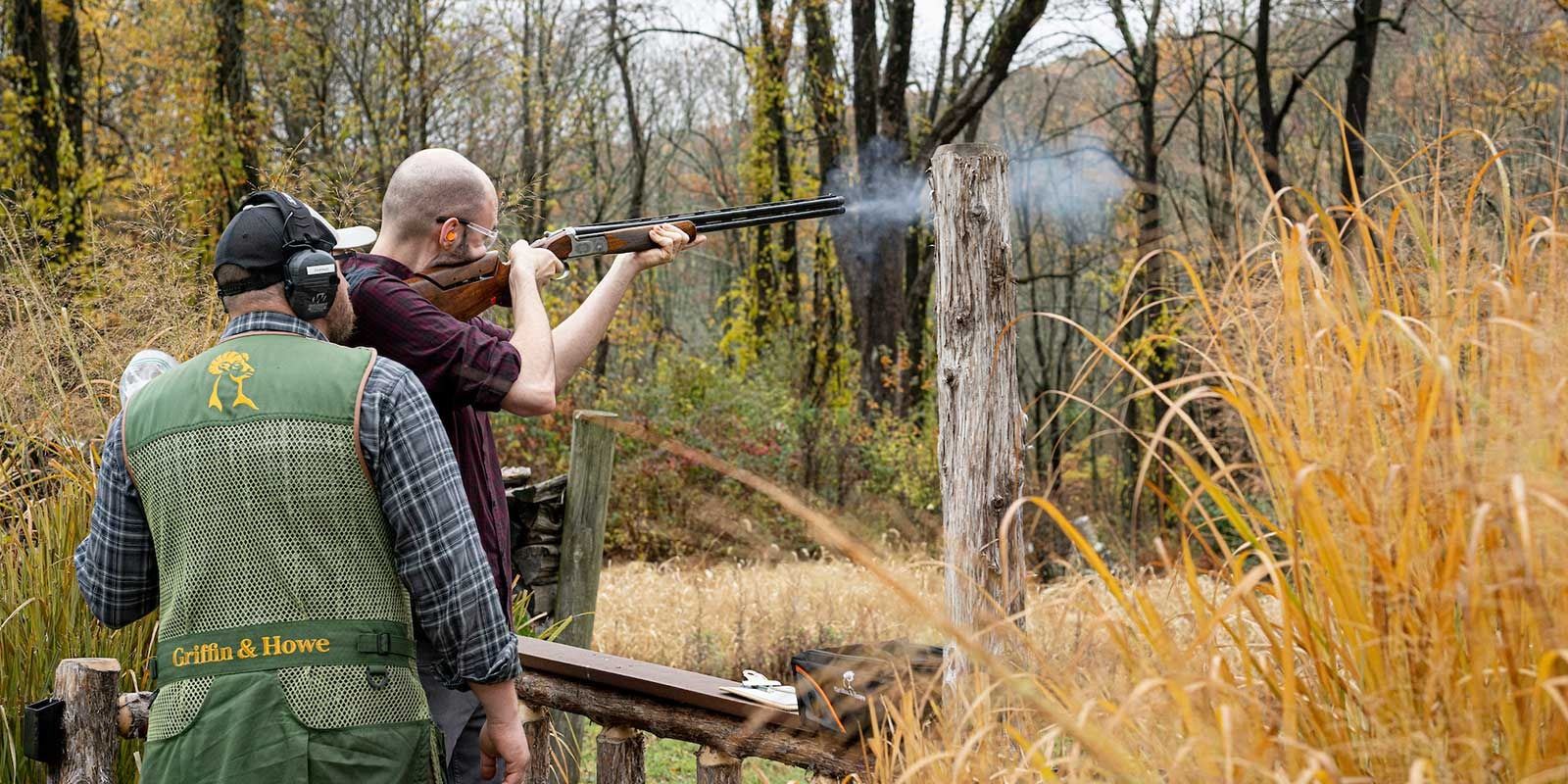 Half day of sporting clay lessons with the Griffin & Howe Shotgun Academy at Hudson Farm for four shooters including lunch, targets and cartridges.