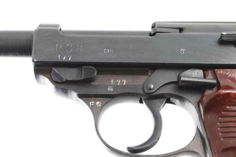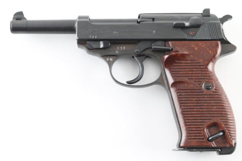 Pistol. Semi-Automatic. 8 rd magazine. This is a Czechoslovakian pistol made from surplus German parts right after the end of the war. Spreewerk slide/frame. Waffenamts (Eagle 88). Barrel stamped fnh for Boehmishe Waffenfabrik, Prague. Serial # 177 stamped on frame, barrel lug and slide. Small rampant lion on barrel and left triggerguard along with "E". Unmarked locking block. There is a very feint import stamp on the right slide rail. Can't make it out. "S" stamped on left side, and "46" stamped on right triggerguard. Date? Bore is very good/bright. Bakelite grips are very good. Blued finish is about 98% with minor scratches. Some stamps are highlighted in white. Correct magazine (unmarked). NRA Condition-Very Good. C&R firearm.