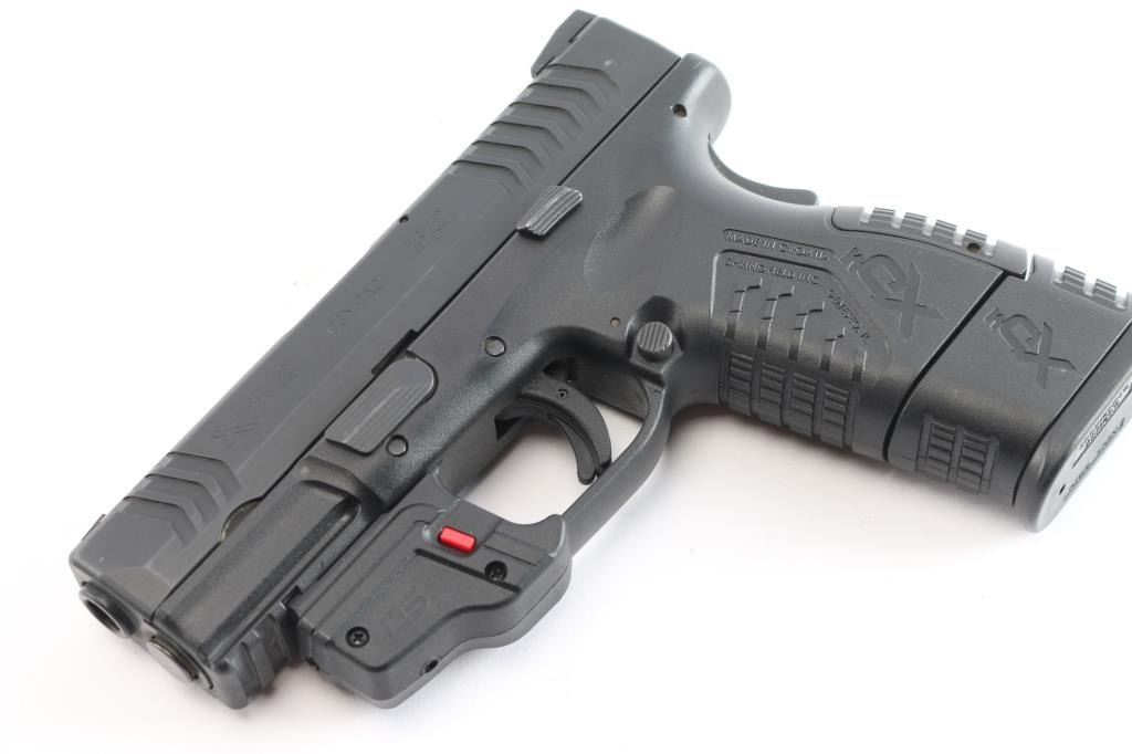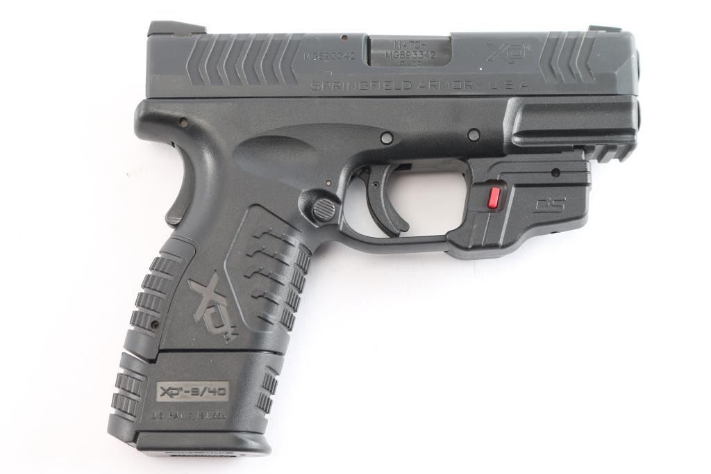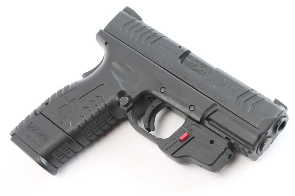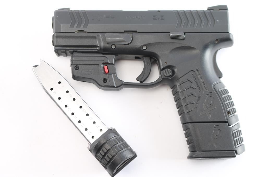 'Sub-Compact' Made in Croatia this is a semi-auto pistol chambered for 9x19mm ammunition. It has a blackened stainless slide, polymer frame with an accessory rail, dovetailed three dot sights, trigger and grip safeties, ambidextrous pushbutton mag release, cocked indicator. Installed on the rail is a Crimson Trace Accu-Guard Red Laser Sight (Needs battery) Overall like new condition with few minor handling marks. Bore is pristine.19 rd double stack factory magazine with extended floorplate. Comes with original hard case, factory black polymer holster, cable lock, two magazine extensions, two back straps, owners manual and spare factory 19 round magazine. (2) total.