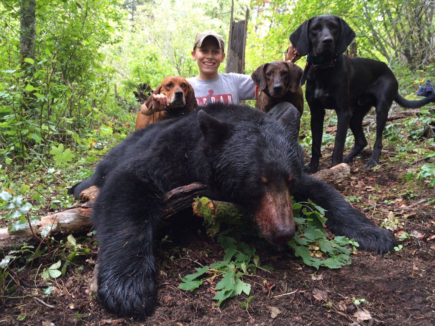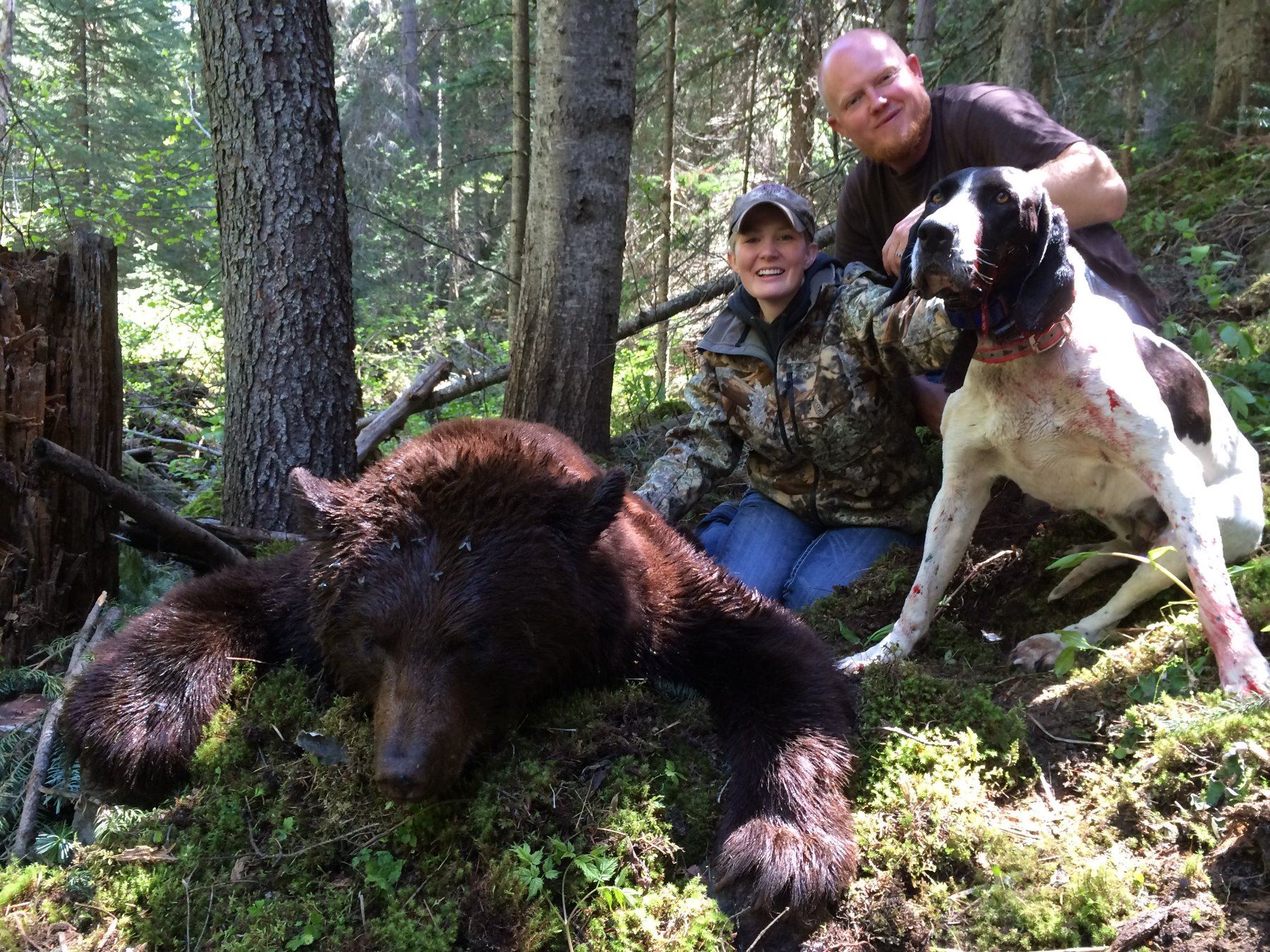 Bear hunting with K-9's Cougar Canyon Outfitters offers a chance for you to harvest a mountain black bear, on a 5-day, fully guided hunt. It also offers you a chance at the beautiful color phased black bear that the Okanagan is well known for. This is not your typical black bear hunt. These hunts will be sure to get you involved! Guide Outfitter Denver Kitzan, has been passionate about hunting and strives to make his clients hunt successful and adventurous in many ways. If you like the sound of hounds, you will love this hunt! This is their dogs doing what they love best! They use their dogs to strike, chase and finally tree or bay these bear up. They utilize quads, UTV's and pickups for this hunt.