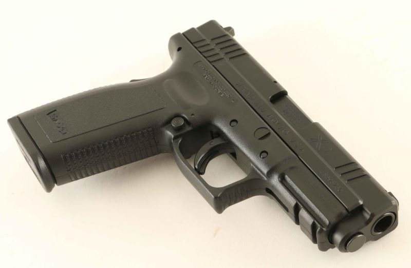 'Service Model' Croatian made striker fired semi-automatic pistol chambered in .45 Auto, circa 2006. Features a matte black Melonite finished slide, 4" hammer forged barrel, captive recoil spring with full-length guide rod, dovetailed three-dot sights, loaded chamber indicator, cocked indicator, trigger safety, grip safety, ambidextrous push button magazine release, factory 13 round magazine, and black polymer frame with integral accessory rail, ambidextrous thumb rest & textured grip. Includes the original factory hard case with manual, spent case, lock, brush, allen wrench, holster, speed loader, mag carrier and a spare magazine. Pistol exhibits approximately 99%+ of its original finish showing very light slide wear on the barrel with no other wear observed. Action is string, bore is pristine, and the polymer is fine. Condition is like NRA Perfect in case. ***Modern Firearm***