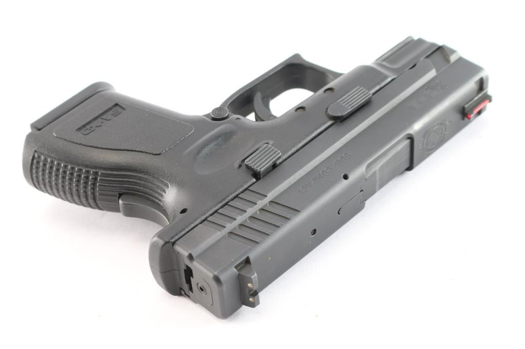 Made in Croatia this is a semiautomatic pistol chambered for 9x19mm ammunition. Features black polymer grip frame with accessory rail, 3" barrel, red fiber optic front sight, 2 dot rear sight in dovetails, striker fired, cocking indicator, loaded chamber indicator, safety in trigger, grip safety, ambidextrous magazine release. Condition is like new, excellent condition with limited signs of handling. Bore is pristine. Comes with one 10-rd factory magazine.