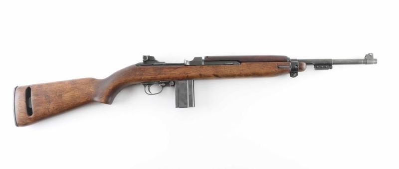 SN: 2095101 US military semiautomatic rifle manufactured circa late 1943. Features parkerized finish, walnut stock & handguard, protected blade front sight, peep rear sight with sliding elevator, 18" barrel, rotating "flipper" manual safety, front sling swivel, wide front band with bayonet lug, sling slot in butt, accepts detachable magazine. Flat top bolt, two rivet handguard. Bore is very good condition. Retains 85% finish, colors and textures consistent with US military arsenals, shows losses on edges and where moving parts rub. Wood is good condition overall with dents & dings, small gouge in handguard, sanded & refinished. Markings include "UNDERWOOD 11-43" & flaming bomb on barrel, crossed cannons on right of butt, "P" on front of grip. No importer marks observed. Includes one good condition blued steel magazine marked "IS". Condition is NRA Very Good (arsenal rebuild) *** C&R Firearm ***