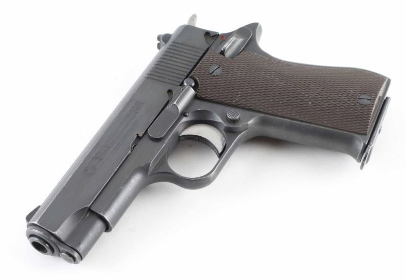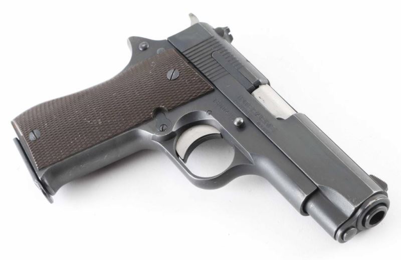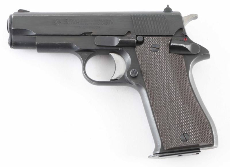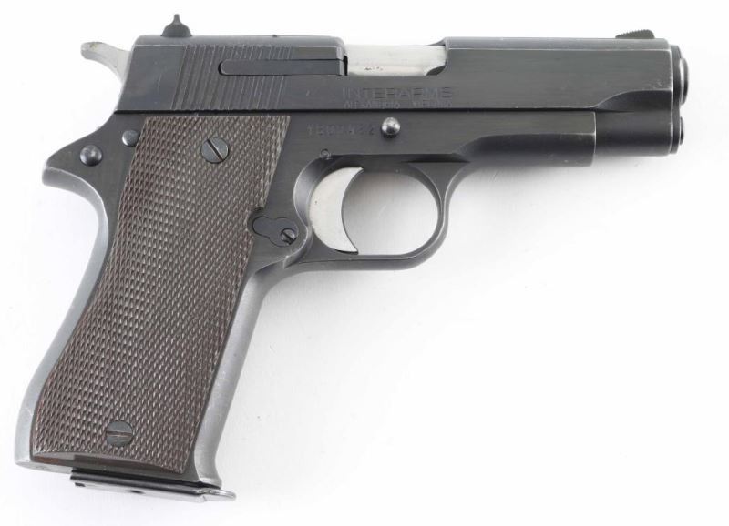 Spanish 9x19mm semiautomatic pistol, imported by Interarms, Alexandria VA. Features blued finish with high polished sides on trigger & hammer, checkered brown plastic grips, single action trigger, 3.75" barrel, fixed sights, manual safety, push button magazine release. Bore is very good condition. Retains 85% finish with handling marks, edge losses, slight discoloration on grip straps. Grips are very good condition. Includes one magazine. Condition is NRA Very Good++ *** Modern Firearm ***
