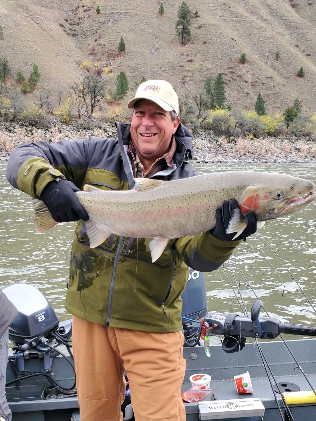 Idaho weather during steelhead season can be unpredictable, so come prepared! We recommend plenty of warm clothing (in layers), stocking hat, ball cap, gloves, good rain gear and sunglasses. Our boats all have propane heaters but it is no substitute for proper clothing. You will need an Idaho fishing license and a steelhead tag. Two people, one day trip from 8 am to 5 pm.