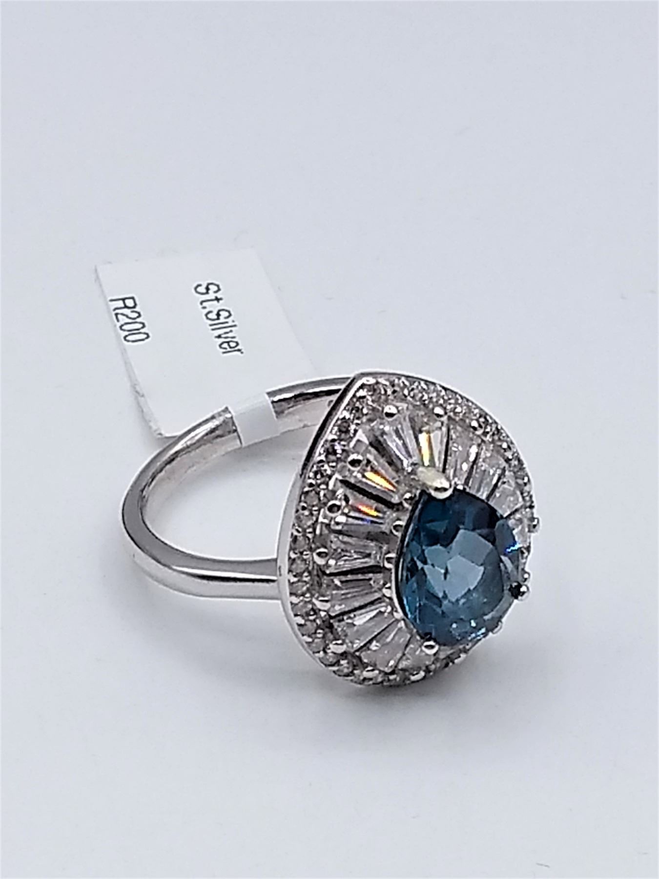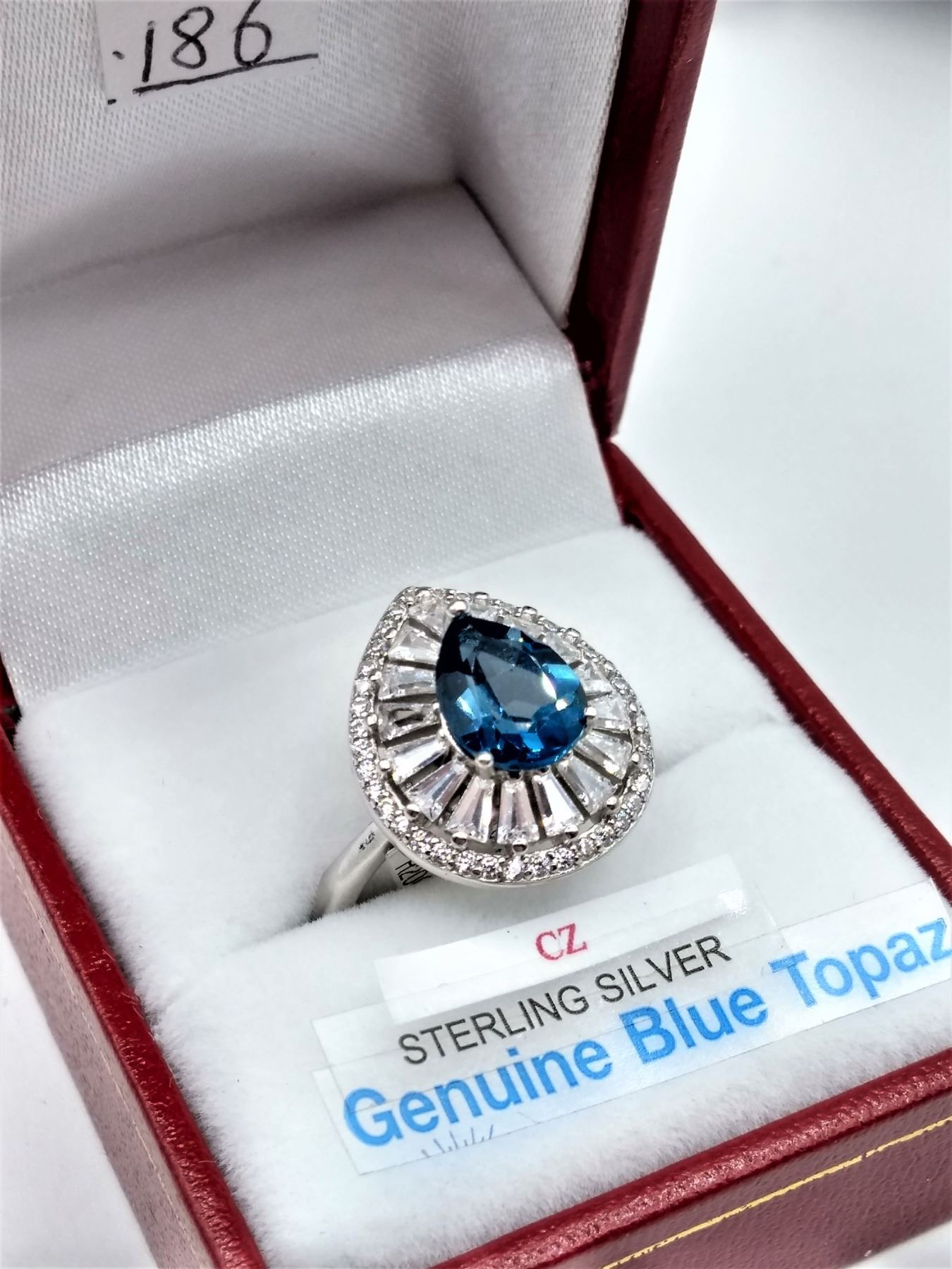 Sterling Silver 9x7mm genuine Blue Topaz (1.95cts) & CZ Cocktail Ring, W/A $1345.00, Blue Topaz is t
