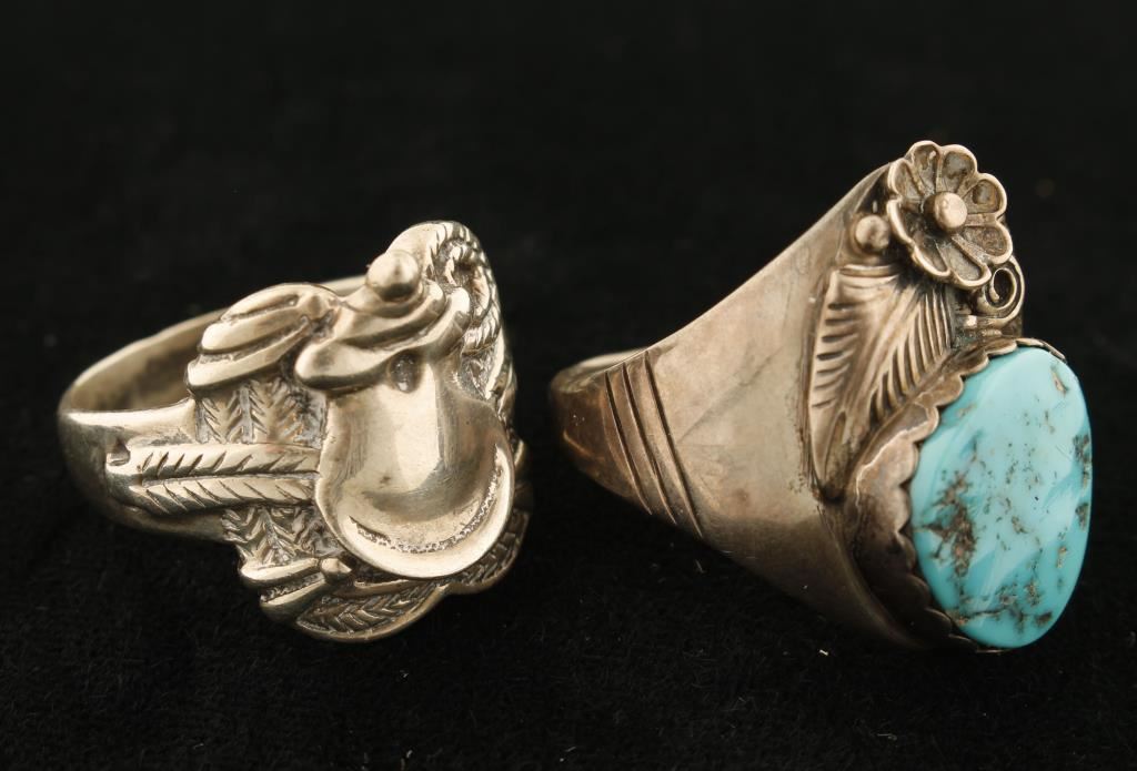 Round Turquoise Stone & a Saddle Styled Ring. Very good condition.