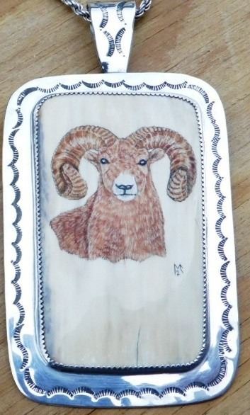 Sterling Silver and Mammoth Tusk Bighorn Sheep Pendant by Marv Clyncke