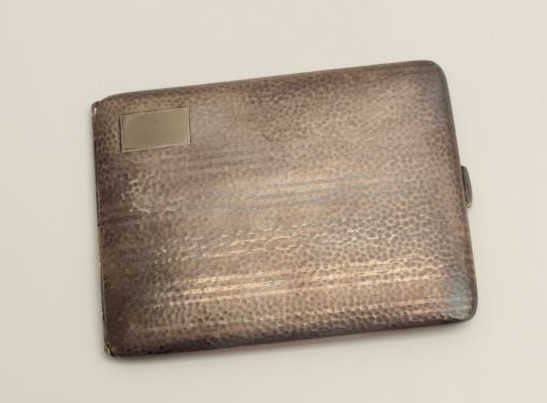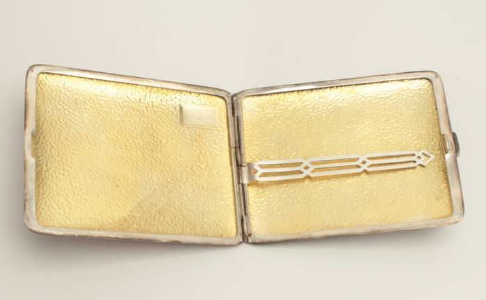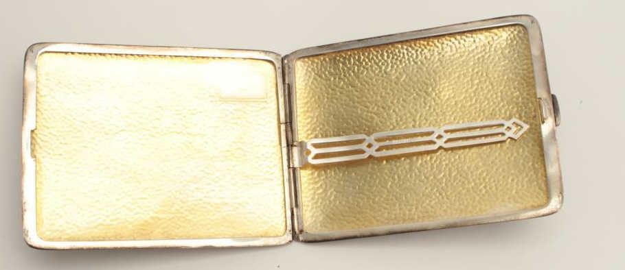 Sterling silver cigarette case, W.M. Co. marked, 125 grams weight. Est.: $75-$150.