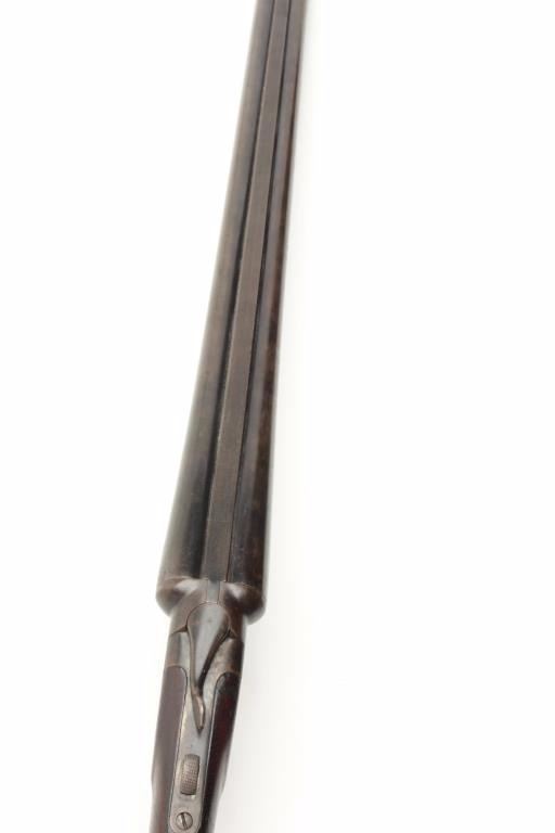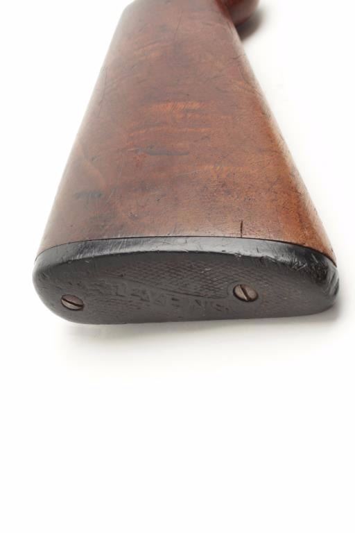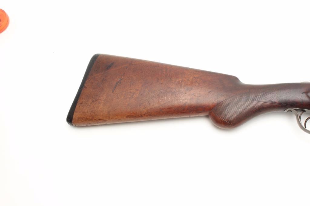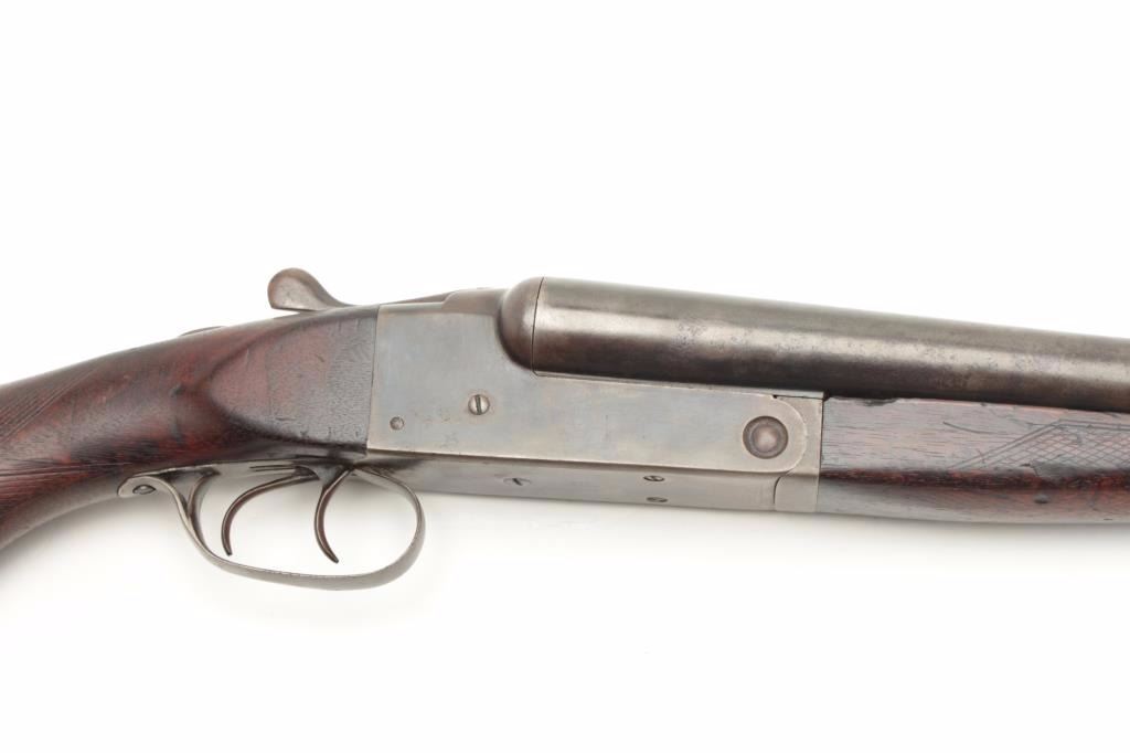 Stevens Model 335 SxS hammerless shotgun, 12 gauge, 30” barrels, checkered wood stocks, S/N 27172, in overall good condition showing a dark patina to the metal surfaces with areas of muted blue, crisp actions, goodmarkings, bores may clean, stocks show wear with scattered mars and scratches from carry and storage. (C&R/PPT). Est.: $150-$300.