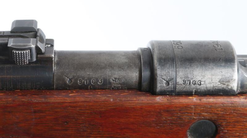 Rifle. bolt-Action. German WW2 military issued Infantry rifle. Very scarce "660" coded rifle, early war Polish/Austrian variant. "660" code changed shortly after production began. Parts came from Steyr as well as the captured Polish Radom plant. 24" barrel with ramp/post front and tangent rear sights. Receiver ring stamped "660", and "1940". 4 waffenamts ,WaW623 on right receiver ring, 2 on the lower left barrel. Eagle/swastika proofs on left barrel, and receiver. Serial number on left receiver and barrel. Correct "H" pattern milled front barrel band. Milled lower band, floorplate, and triggerguard. Waffenamteagle/625 on bolt. 2 Waffenamts Eagle/623 stamped on the triggerguard. Serial number matches on the barrel, receiver bolt, triggerguard , rear sight base,with Waffenamt Eagle/623 , floor plate screw, and bolt release. Mismatched barrel bands, and floorplate. Safety latch stamped with Polish "Z" in circle. It is usual to find some mismatched parts on these rifles. Unmarked buttplate. There is a "W", and "K" stamped behind the triggerguard on the stock. Cleaning rod present. Bore appears ok with strong rifling, but a little dark/dirty. Laminated stock/handguard are good with the usual minor scratches/dings. Blued finish is about 70% with handling/edge wear. Buttplate is in the white with some minor pitting. Action is crisp/tight. Correct issue sling attached. NRA condition-Very Good. C&R Firearm.