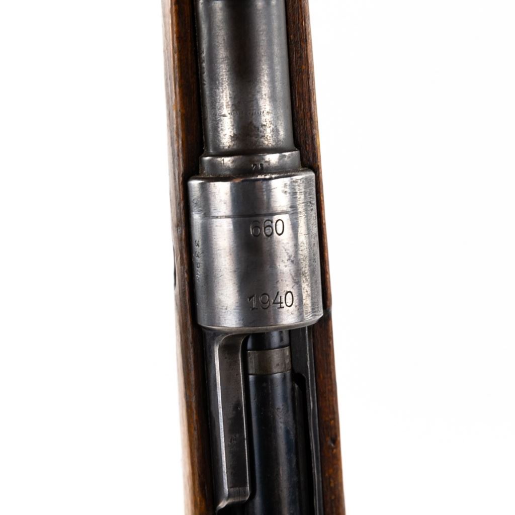 Steyr Daimler Puch "660" Mauser 8mm Rifle in good condition with wear. The rifle has rifling with freckling. This is a rare Second World War Steyr-Daimler-Puch (660 coded) K98k dated 1940 fitted with 1939 dated and correctly coded barrel. In 1939 Germany invaded and took over control of the factory and manufacturing of Radom. Germany utilized the captured receivers, partially finished parts etc, and sent them to Steyr for final assembly. This assembly first occurred in 1940, when the fewest were assembled. They restocked them and adding their own designation stamps then reissued these rifles to their own troops. A total of around 54,000 were made and with vast majority produced in 1941. Very few of these early carbines exist as most were captured, destroyed or broken up after the war. Barrel, receiver and stock have correct numbers. The bolt is NOT numbered. C&R Eligible S/N:3394