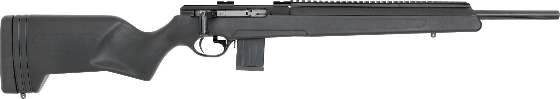 The Steyr Scout RFR is the perfect companion in rough terrain and at the range. Take your choice of three calibers including .17 HMR, .22 LR, and .22 WMR. It has a 1/2"-20 UNF threaded 20" barrel, with an overall rifle length of 35.6". It weighs 7.3 lbs, and includes a metal 10 round magazine. An optional knife tucks away completely in the stock. Includes two weaver style bases for mounting optics. *The .22 WMR rifle is not threaded. The image is representative, the actual firearm may vary slightly. The image is representative, the actual firearm may vary slightly.
