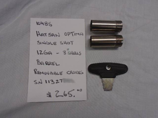 HATSAN OPTIMA SHOTGUN, Single Shot, 12GA - 3" Shells, 28" Barrel,Removable Chokes (F, M, IC), Condition: Very Good Over All, Made in Turkey, SN 11327XXX