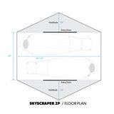 Skyscraper 2P - The Skyscraper 2P is a burly 2-person, 4-season double-wall tent with a minimum trail weight of 3lbs 1oz. (tent body, poles, Webtruss, 4 stakes). At the heart of the Skyscraper 2P is the innovative WebTruss technology. This unique construction system provides unmatched strength, a low wind profile, and makes pitching the tent a breeze. The WebTruss is formed from 6/6 nylon fabric, and the tent fabric is a combination of 15D and 20D Nylon Ripstop. We know keeping gear dry is vital in the backcountry and the Skyscraper 2P has two extra-large vestibules (11 sq ft + 11 sq ft) to accommodate all your gear. In short, the Skyscraper 2P is a bomber versatile tent designed for the ultralight mountain hunter.
