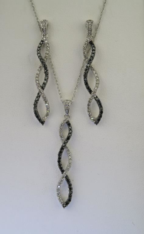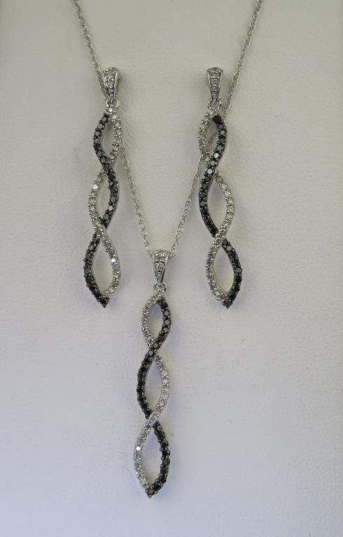 & Matching Dangle Earrings Set. 150 micro-set white and black Daimonds set in 10 karat white gold.