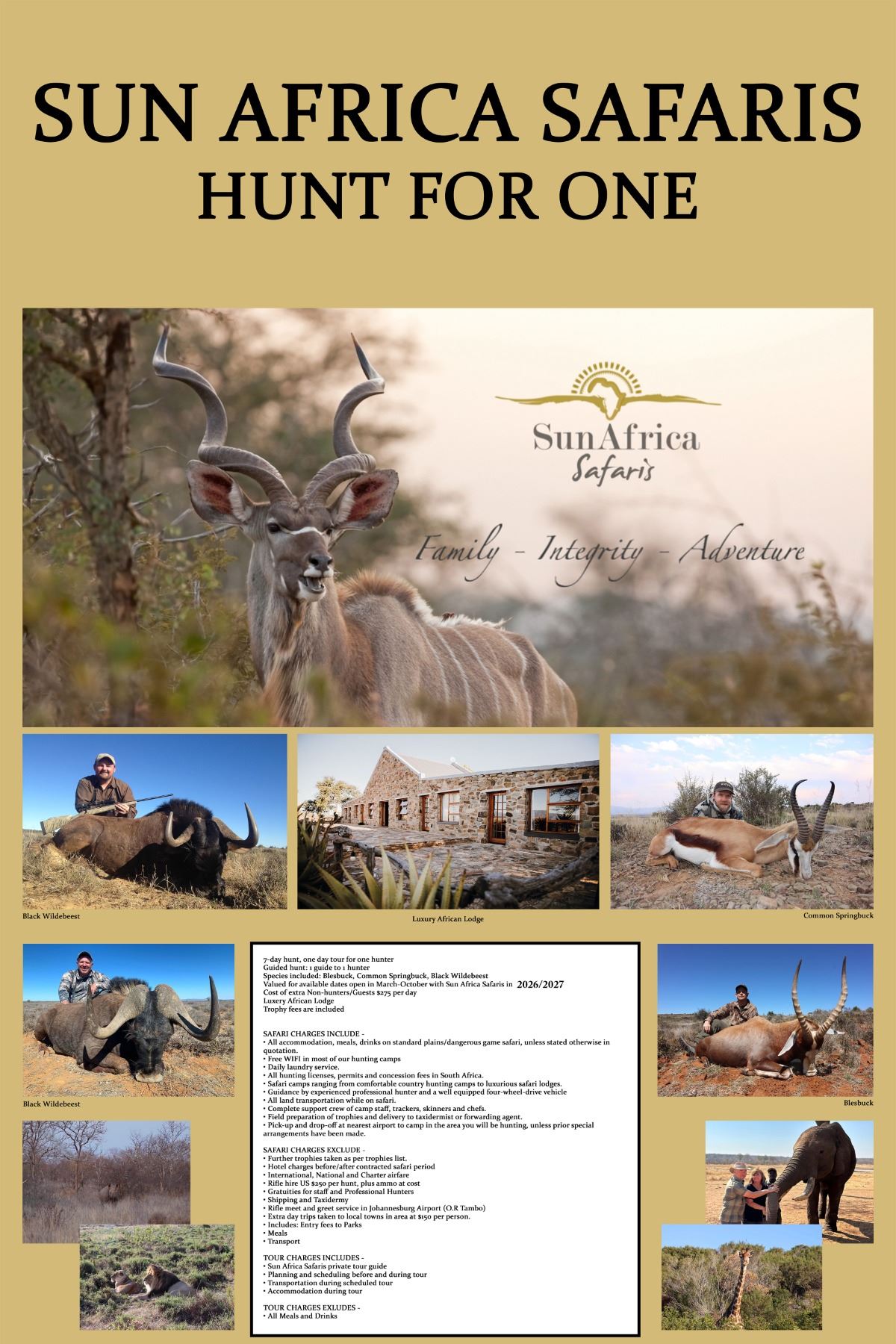 This hunt included one hunter and 3 species; Blesbuck - Black Wildebeest - Common Springbuck