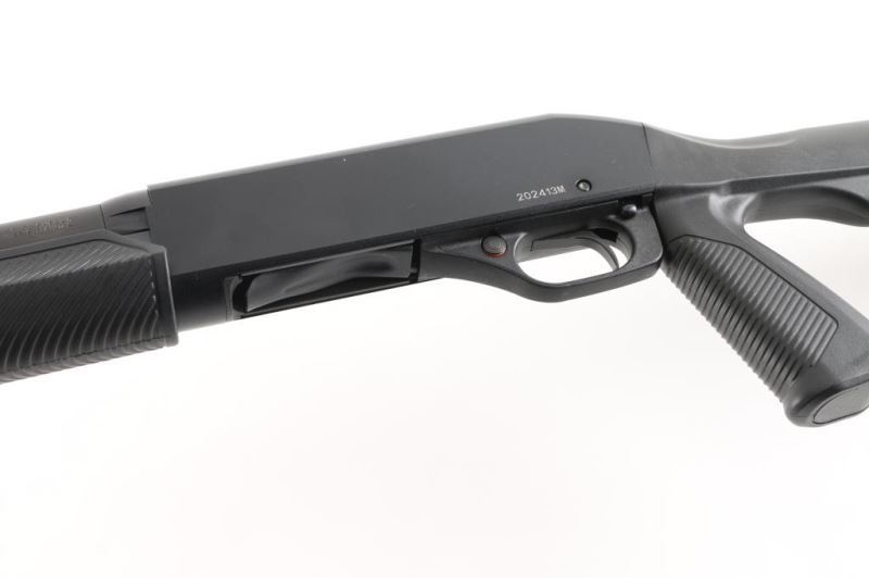 12 Ga SN:202413M Made in China and imported by Savage the Stevens 320 Security shotgun is an economical 12 gauge pump chambered for 2.75" & 3" shells with a 13.5" LOP. It has a light alloy receiver, an 18.5" chrome alloy steel barrel with fixed cylinder choke and synthetic stock with rubber recoil pad and pistol grip. It features a front bead sight, no rear sight but receiver is drilled and tapped for an optic and has a 5 round tube magazine. It comes with the original box and owners manual. Condition is NRA Perfect **Modern Firearm**