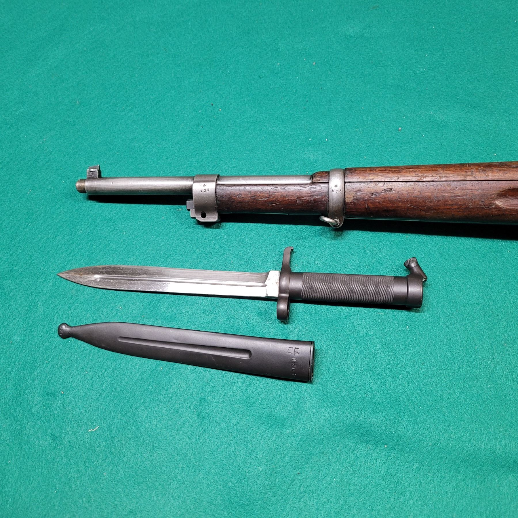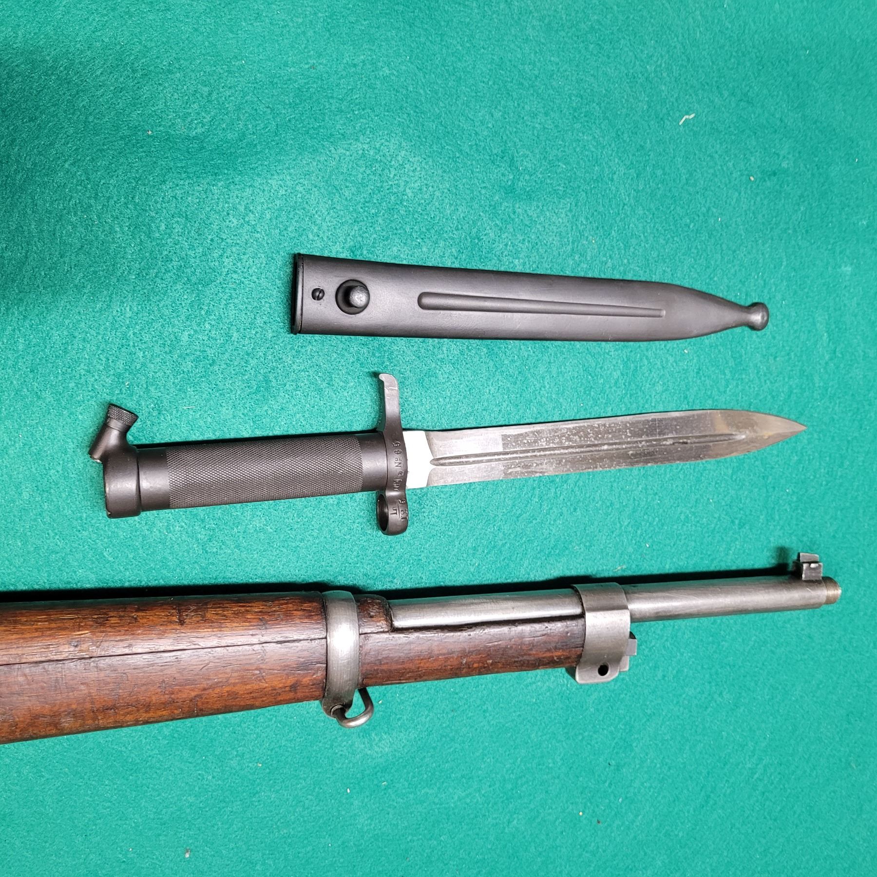 Some blueing loss in some areas. Bayonet maybe reblued.