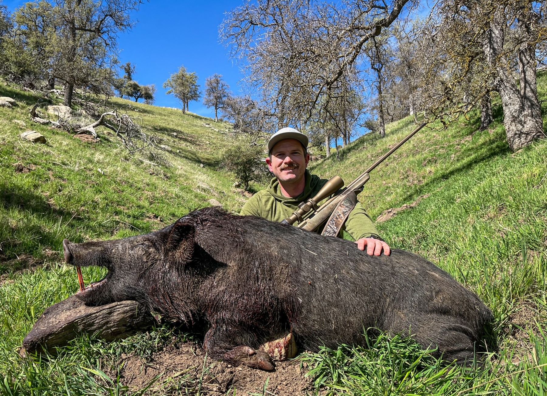 Chase hard‑charging wild boar through rolling oak country on 10,000 private acres in the Tehachapi mountains. Fast‑paced, high‑success pig hunting at its best. A fully guided 2‑day wild pig hunt for two hunters on 10,000 private acres in the Kern County mountains. High‑success, action‑packed boar hunting in classic rolling oak country.