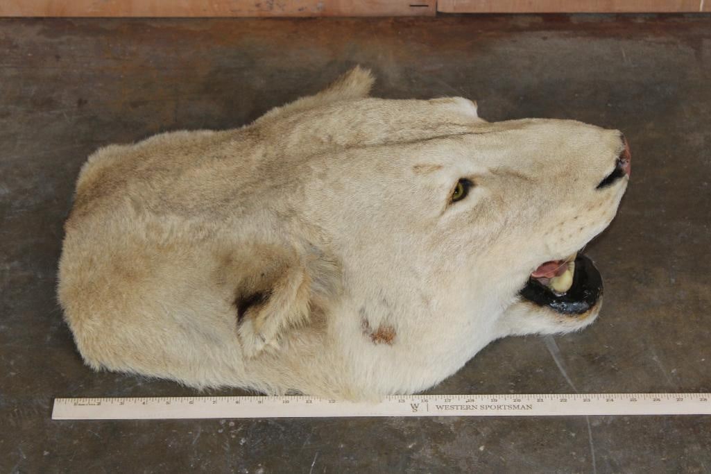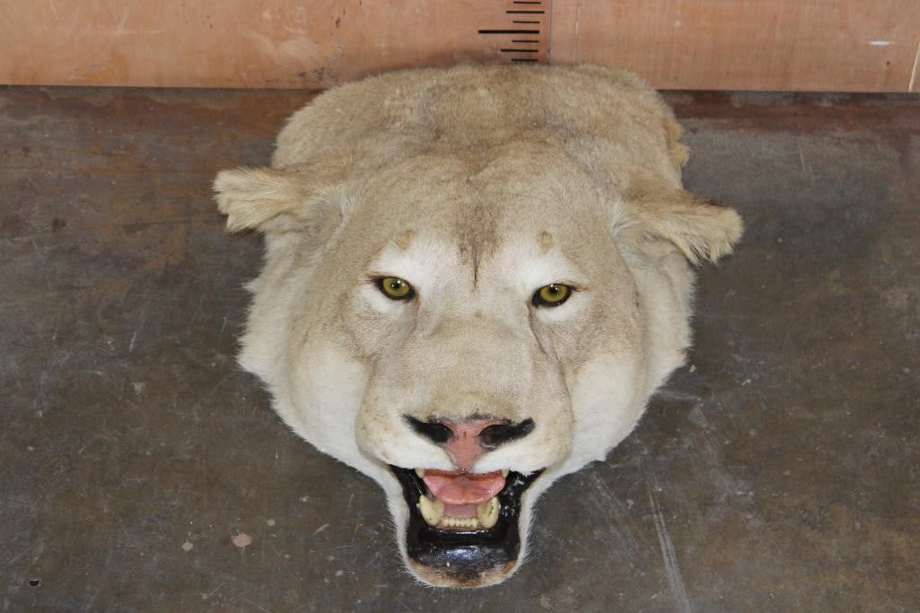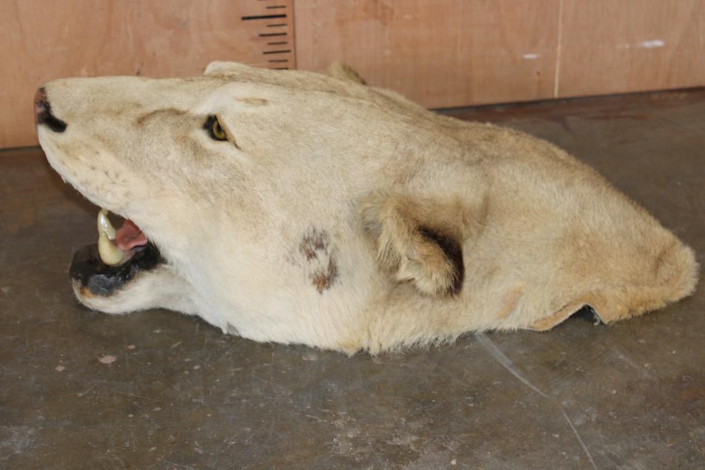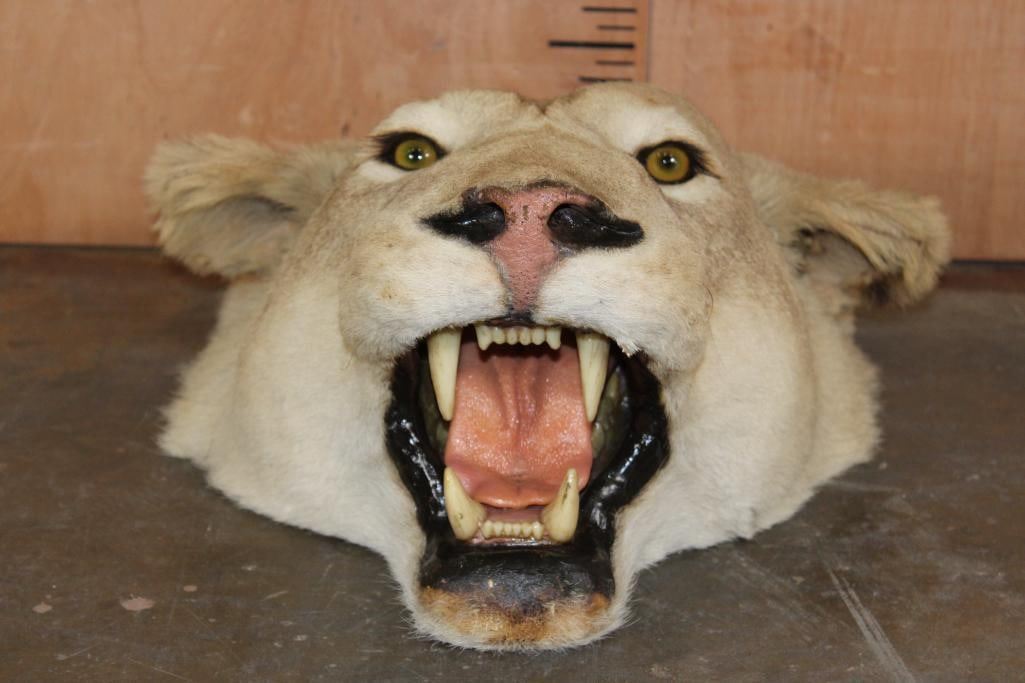 *TEXAS RESIDENTS ONLY* Nice and Big AFRICAN LIONESS Head Mount. It measures 25.5" Long x 19" Wide x 10" Tall. It was taken from a rug, you have freedom to mount it anyway you'd like or leave as is. It is in Good Condition.?