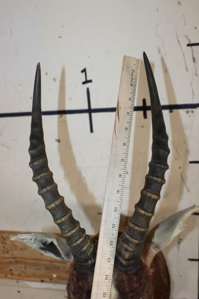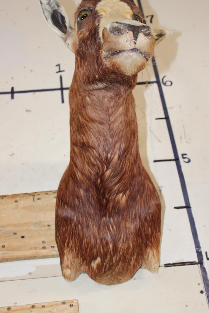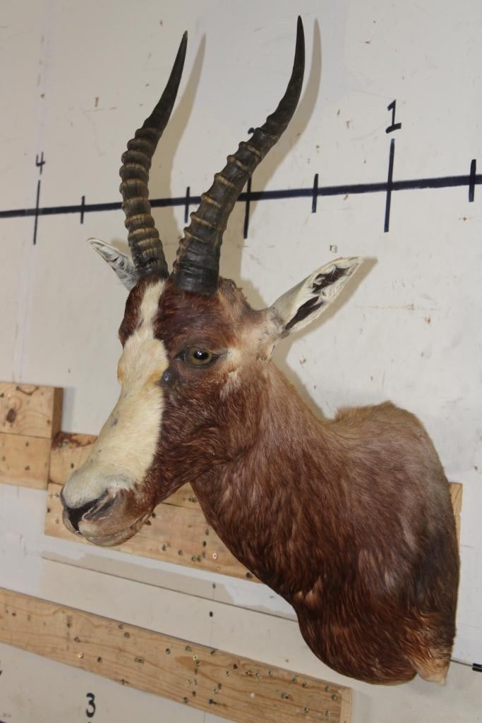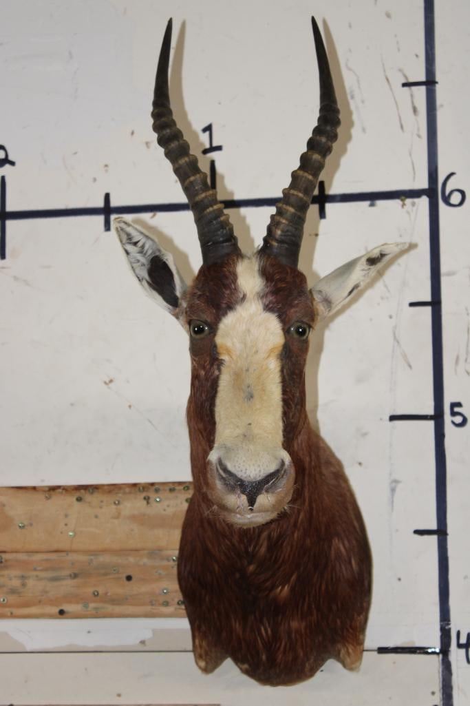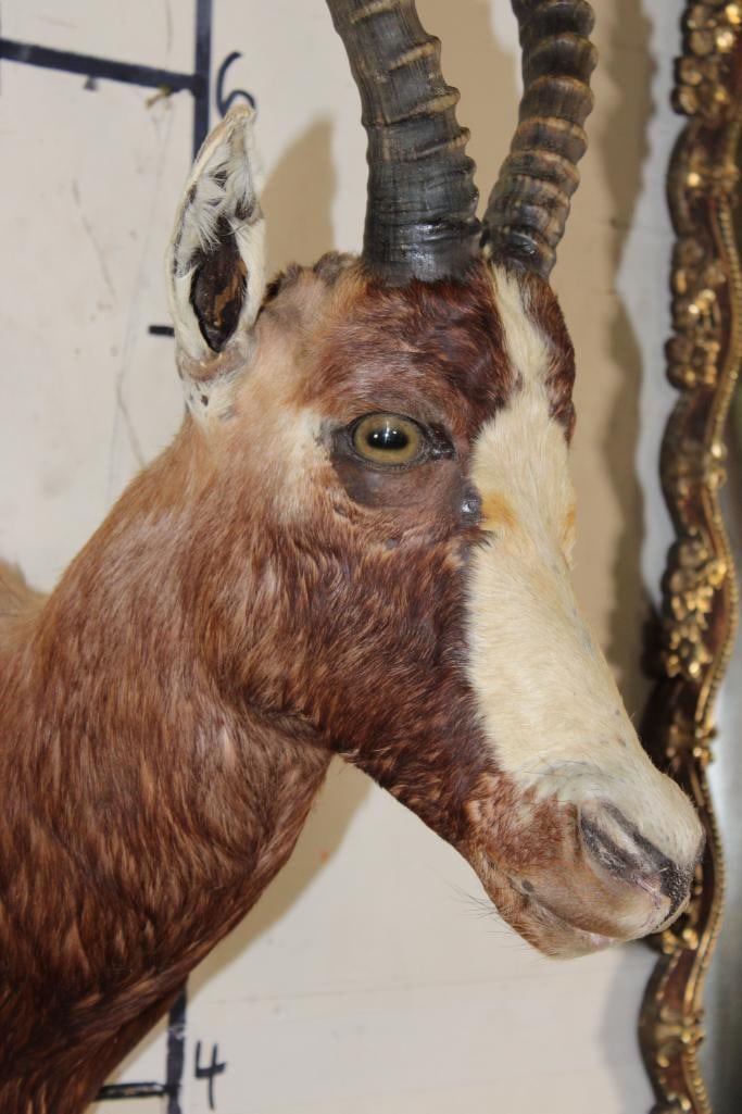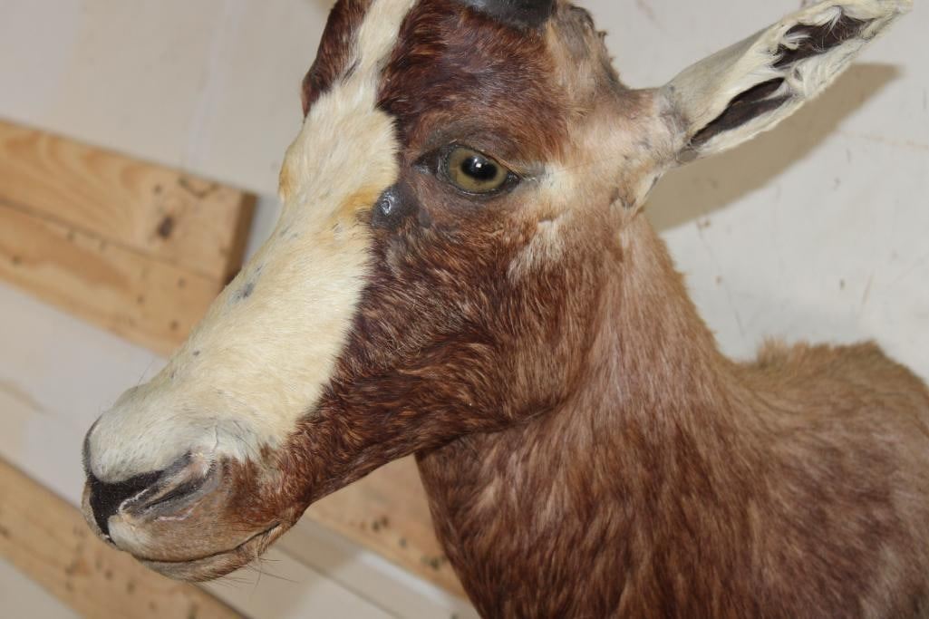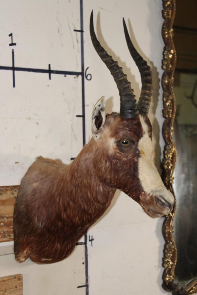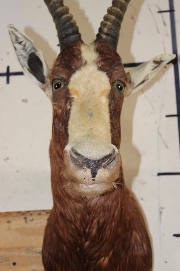 *TEXAS RESIDENTS ONLY*!!! BONTEBOK Shoulder Mount. It has some damage around the mouth, nose, and ear. Otherwise it is in Good Condition. TAXIDERMY