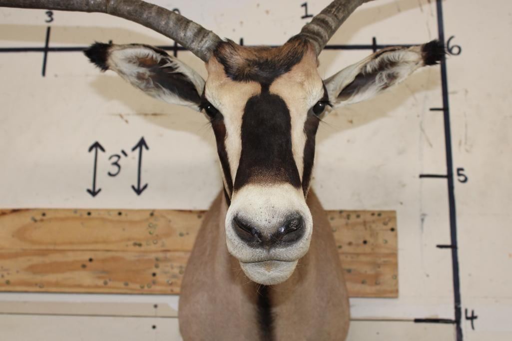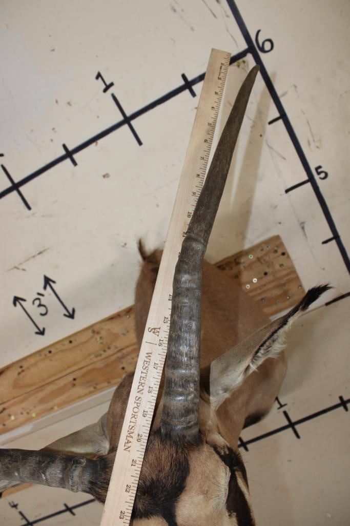 *TEXAS RESIDENTS ONLY!!!* FRINGE-EARED ORYX Shoulder Mount with a Very Unique Horn Deformity. The Left Horn measures 20.5" Long and the Right Horn measures 20.5" Long. TAXIDERMY