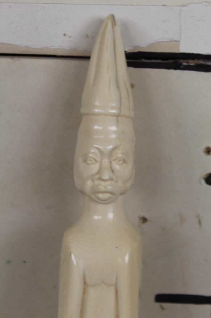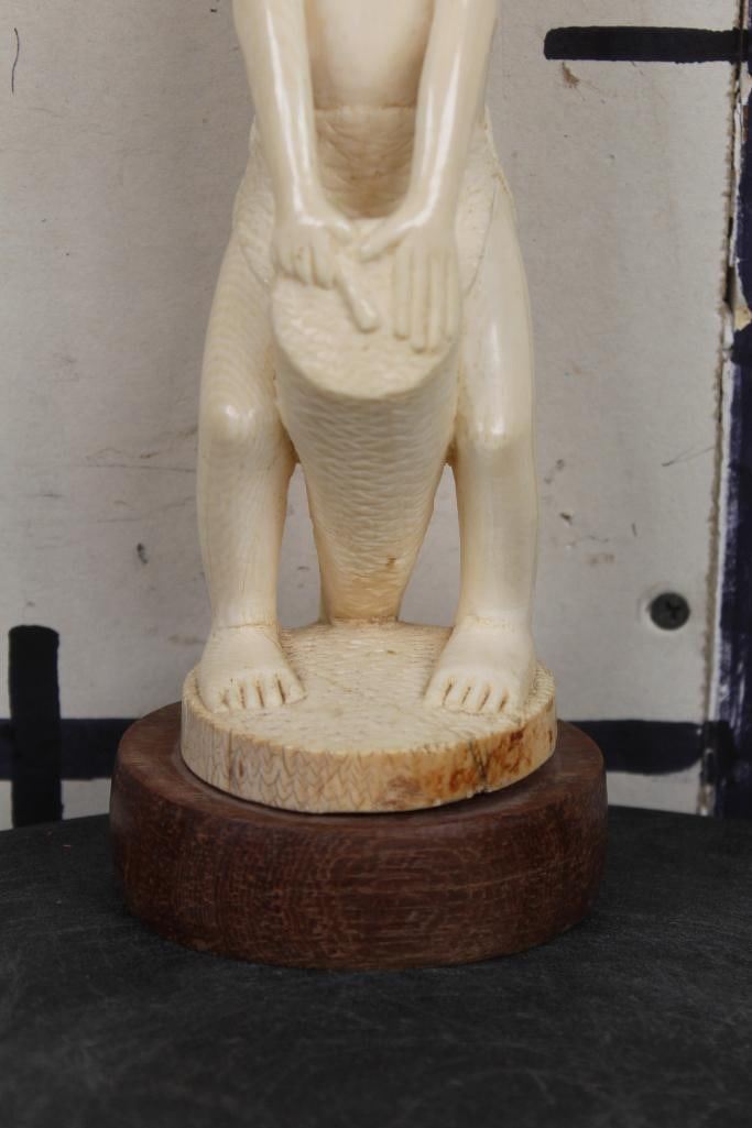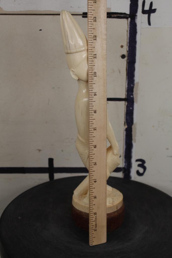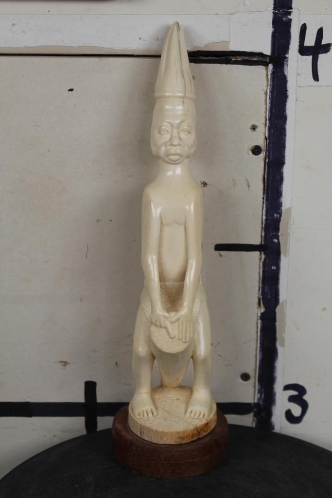 *TEXAS RESIDENTS ONLY*! Hand-carved African ELEPHANT IVORY Statue of a man playing a drum. The Ivory Carving measures 12.75" Tall x 3" Wide at the Base. The Total Statue measures 13.5" Tall including the circular Wood Base. The Total Weight is 2 lbs 4 oz. It was brought back from Nigeria. AFRICAN ART and ARTIFACTS