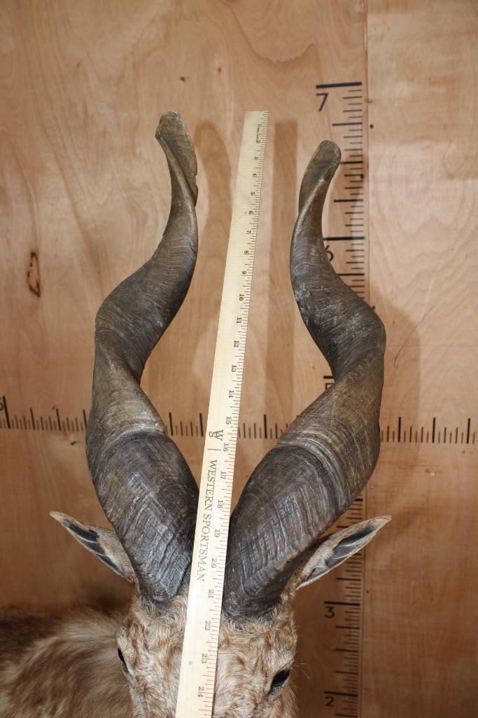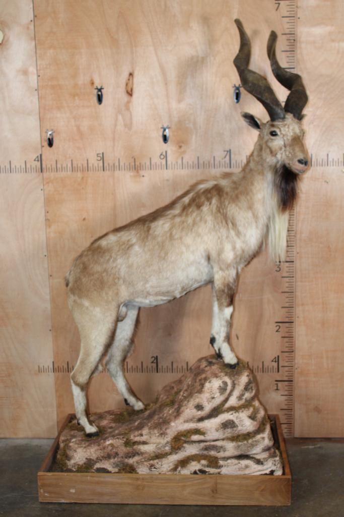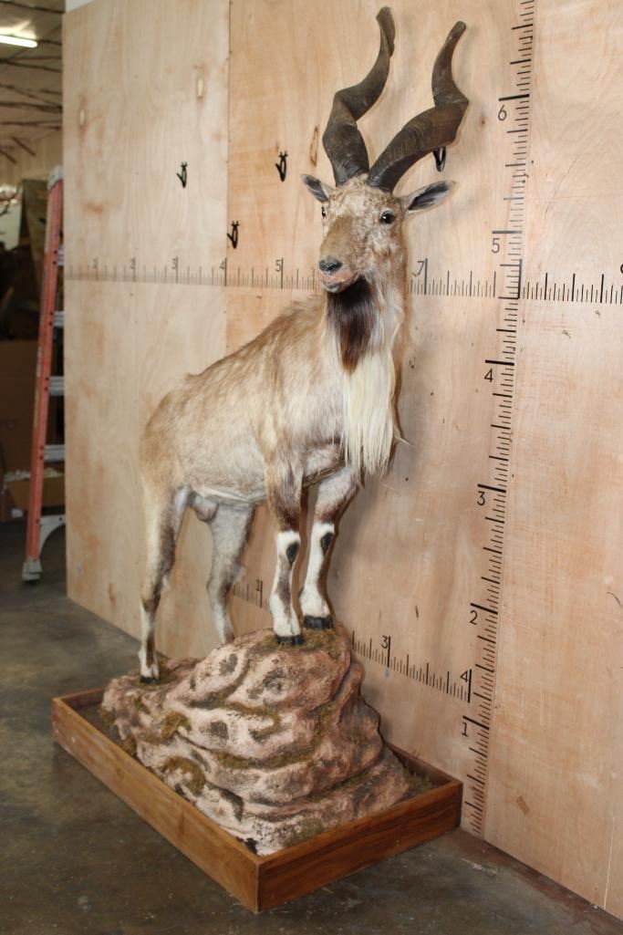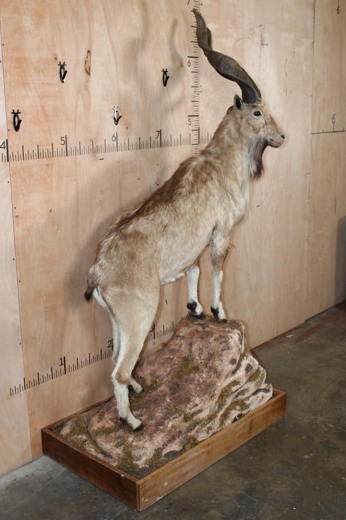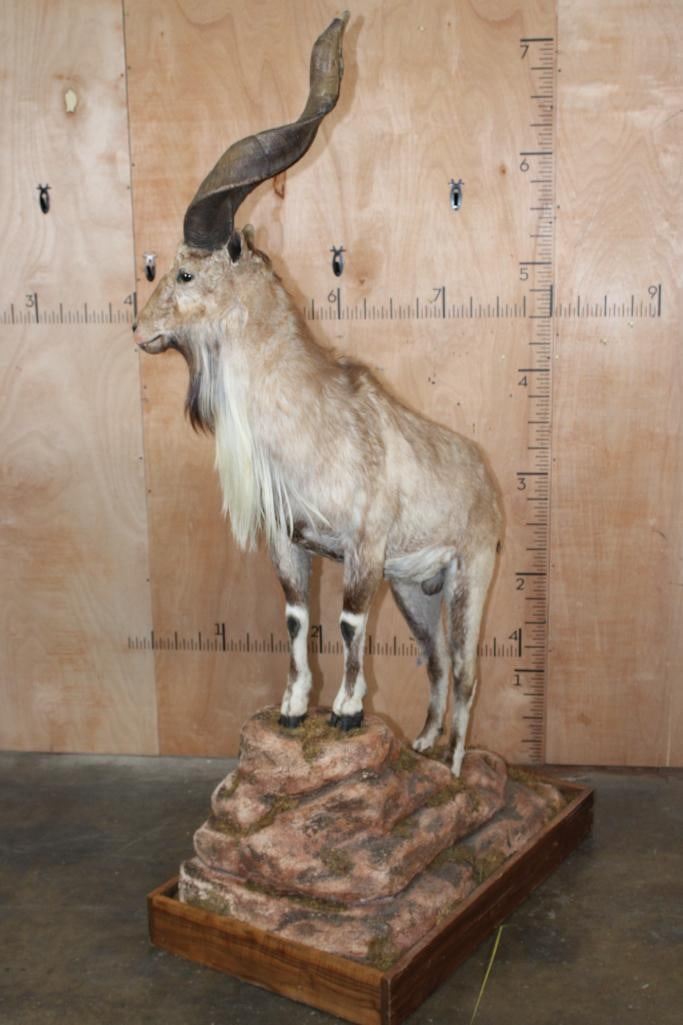 *TEXAS RESIDENTS ONLY*! Nice Life-sized BUKHARAN?MARKHOR. The Left Horn measures 26" Long and the Right Horn measures 26" Long around the spiral ridge. It is?mounted on a Simulated Rock Base with Wheels that measures 42.5" Long x 26" Wide x 26" Long and it stands 6' 9" Tall. TAXIDERMY? *Texas Residents Only* means YOU, the registered bidder, must have a valid Texas Driver's License to purchase.