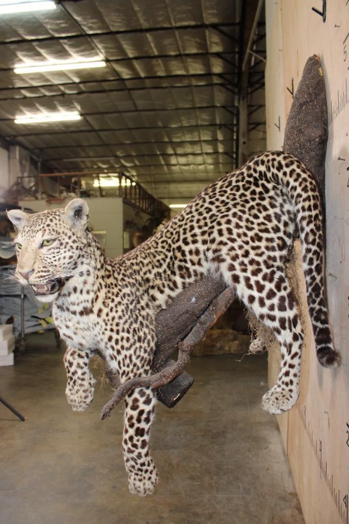 *TEXAS RESIDENTS ONLY*! Very Nice, Clean, and Newer Life-sized LEOPARD. It has amazing color, a great face, and All its Claws. It is mounted on a Foam Branch Wall Hanging Base and is in Very Good Condition. TAXIDERMY