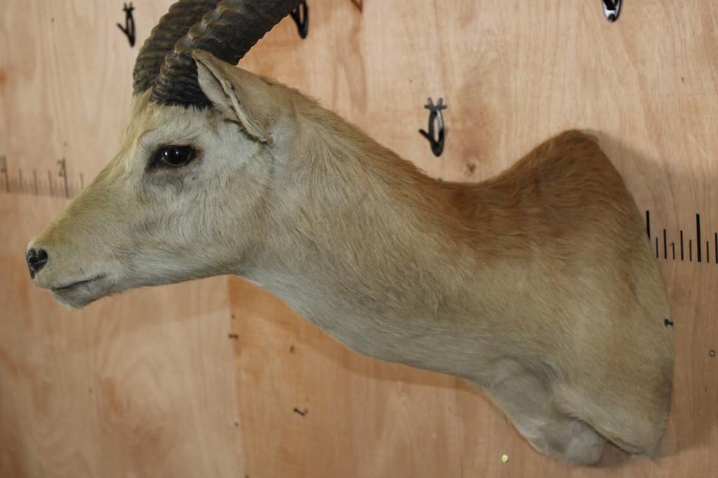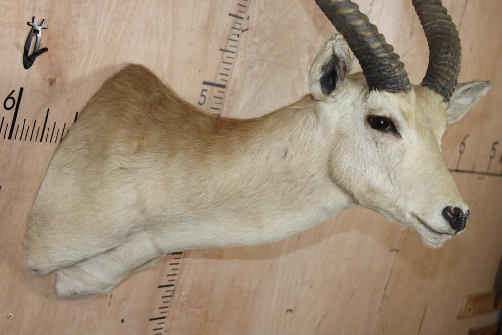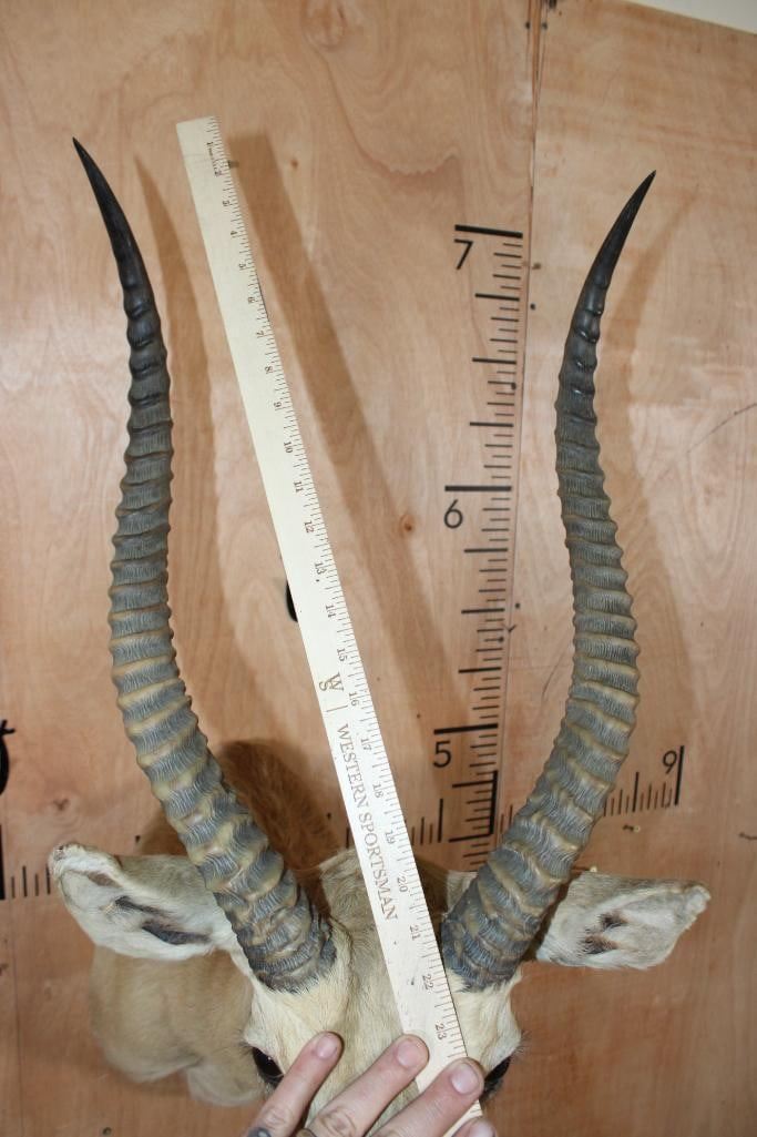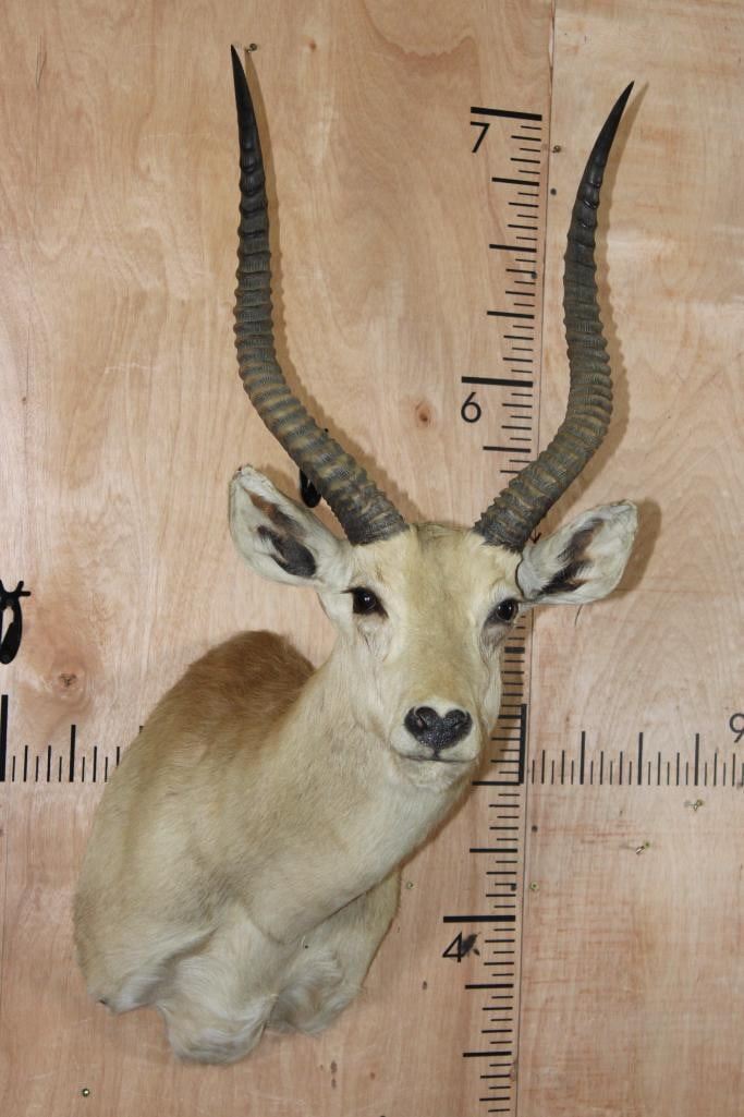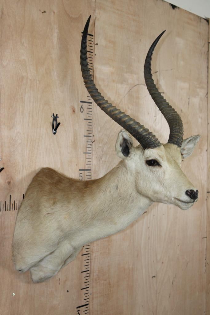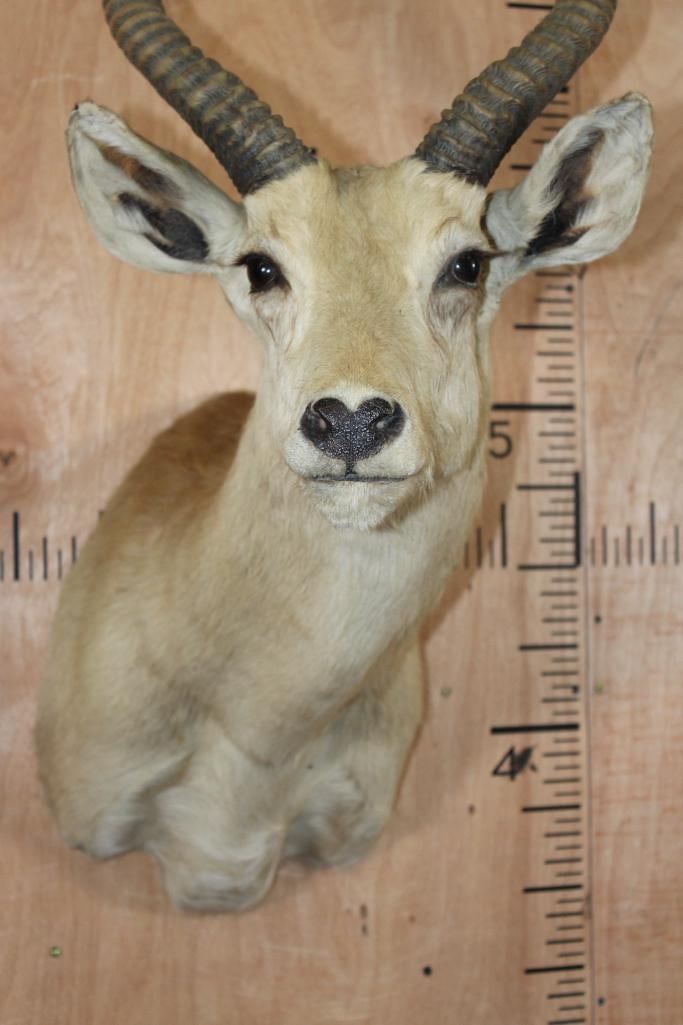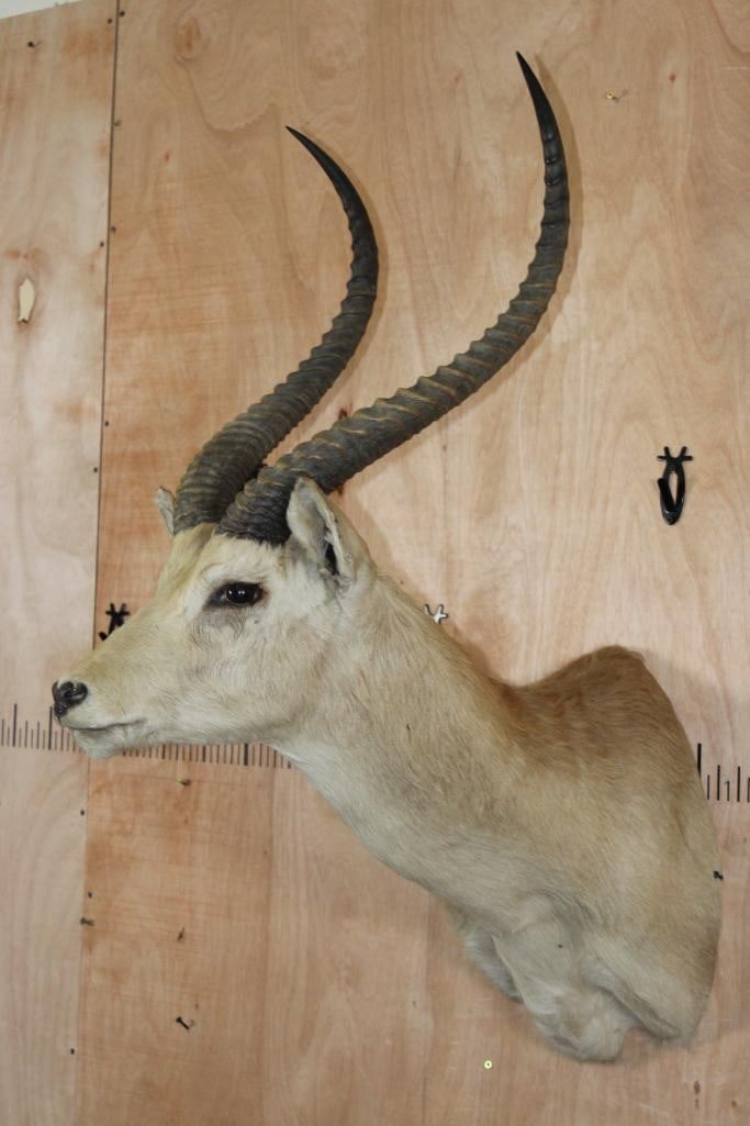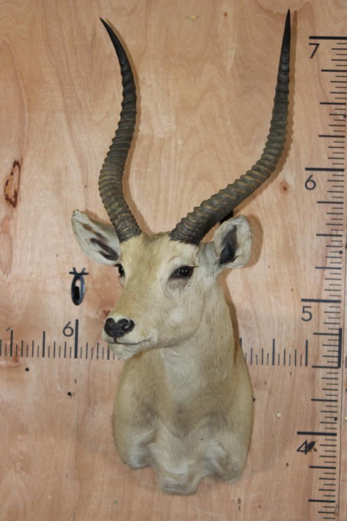 *TEXAS RESIDENTS ONLY*! RED LECHWE Shoulder Mount. The Left and Right Horn measure 25.25" Long each. This is an Older mount with minor ear damage and faded color. Otherwise it is in Good Condition. TAXIDERMY *Texas Residents Only* means YOU, the registered bidder, must have a valid Texas Driver's License to purchase.