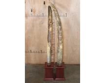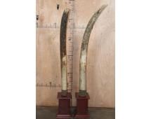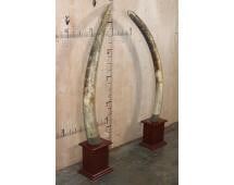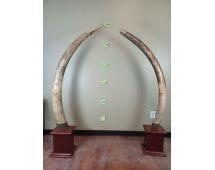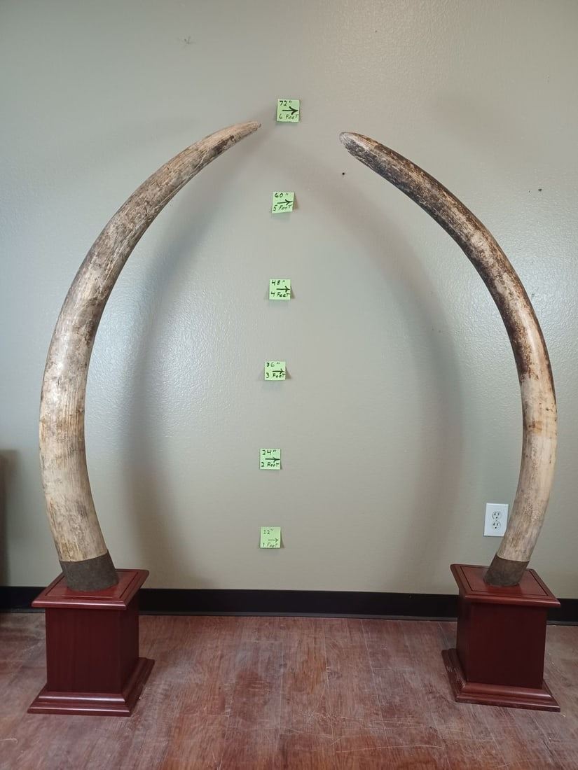 *TEXAS RESIDENTS ONLY*! Set (2) of ELEPHANT IVORY TUSKS Mounted on Mahogany Bases. The Left Elephant Ivory Tusk measures 67.5" Long and 11.5" around the Tusk Base and Weighs 36 lbs 12 oz. The Right Elephant Ivory Tusk measures 72.5" Long and 15 5/8" around the Tusk Base. They are embellished with Elephant Skin wrapped around the Tusk Bases. They measure between 6' and 7' Tall. The Total Ivory Weight is 76 lbs 4 oz. TAXIDERMY *Texas Residents Only* means YOU, the registered bidder, must have a valid Texas Driver's License to purchase.