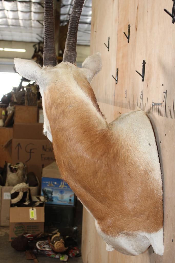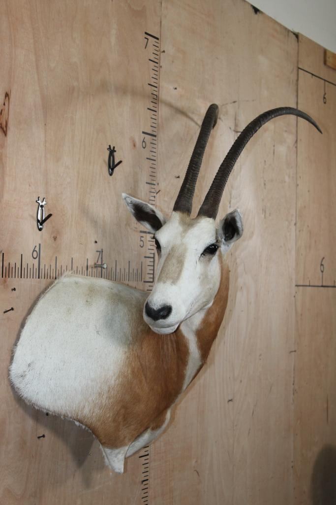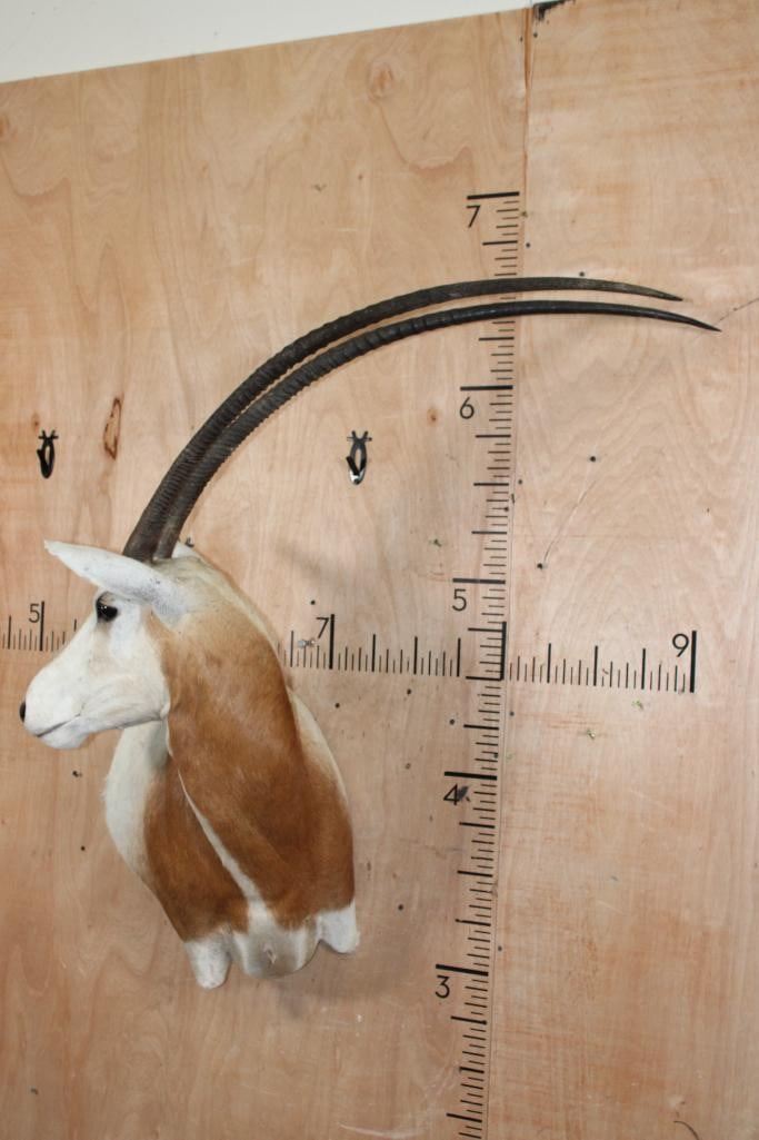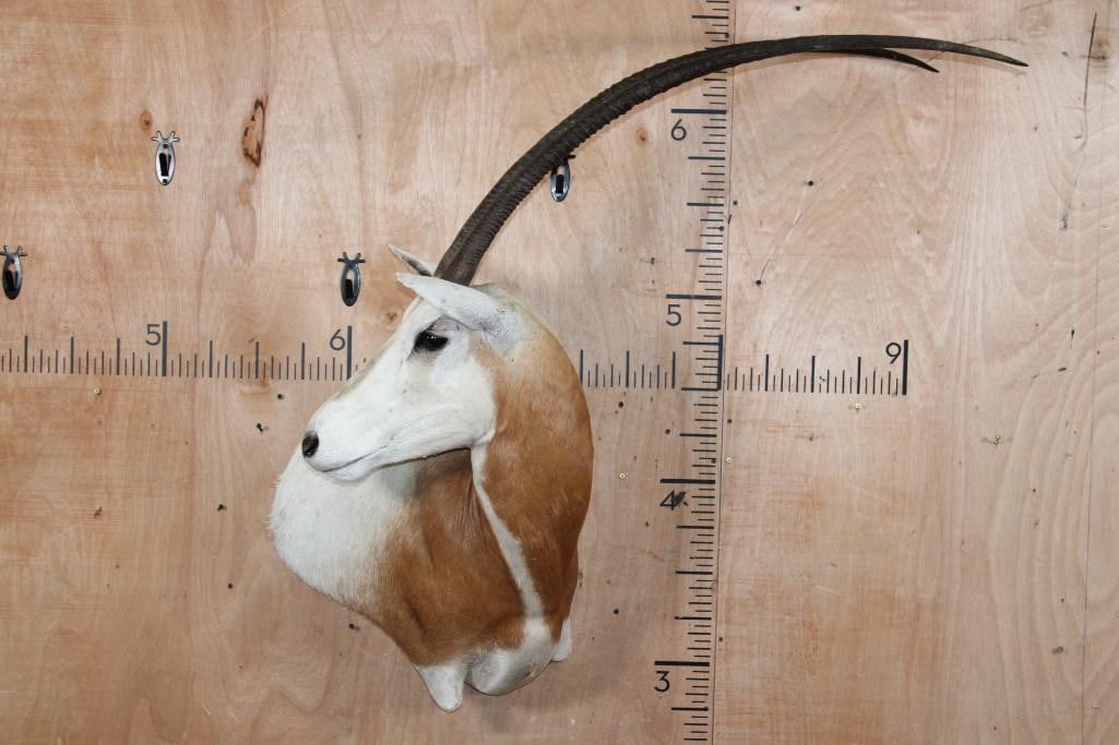 *TEXAS RESIDENTS ONLY*! Incredibly Nice Trophy Size SCIMITAR HORNED ORYX Wall Pedestal in *Like New* Condition. The Left Horn measures 39 3/8" Long and the Right Horn measures 39 7/8" Long. TAXIDERMY??
