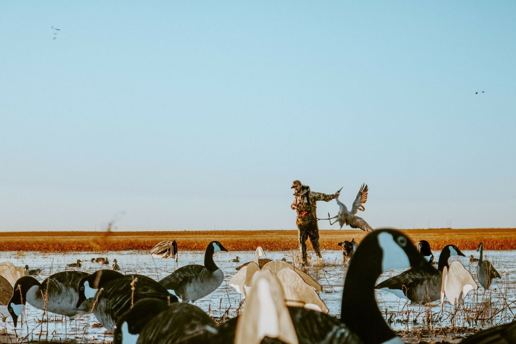 A 2‑day Sandhill Crane and waterfowl hunt for up to four hunters in the Amarillo, Texas region, guided by licensed professionals with blinds, decoys, bird retrieval, and all in‑field transportation provided.