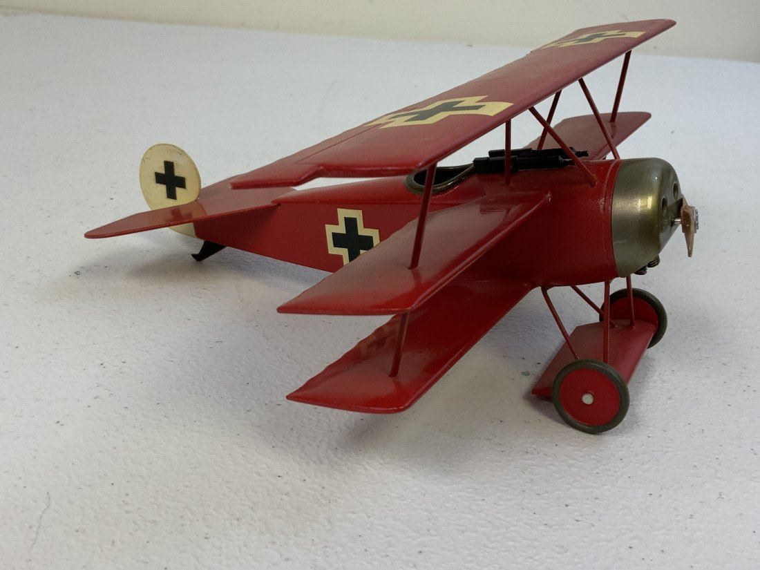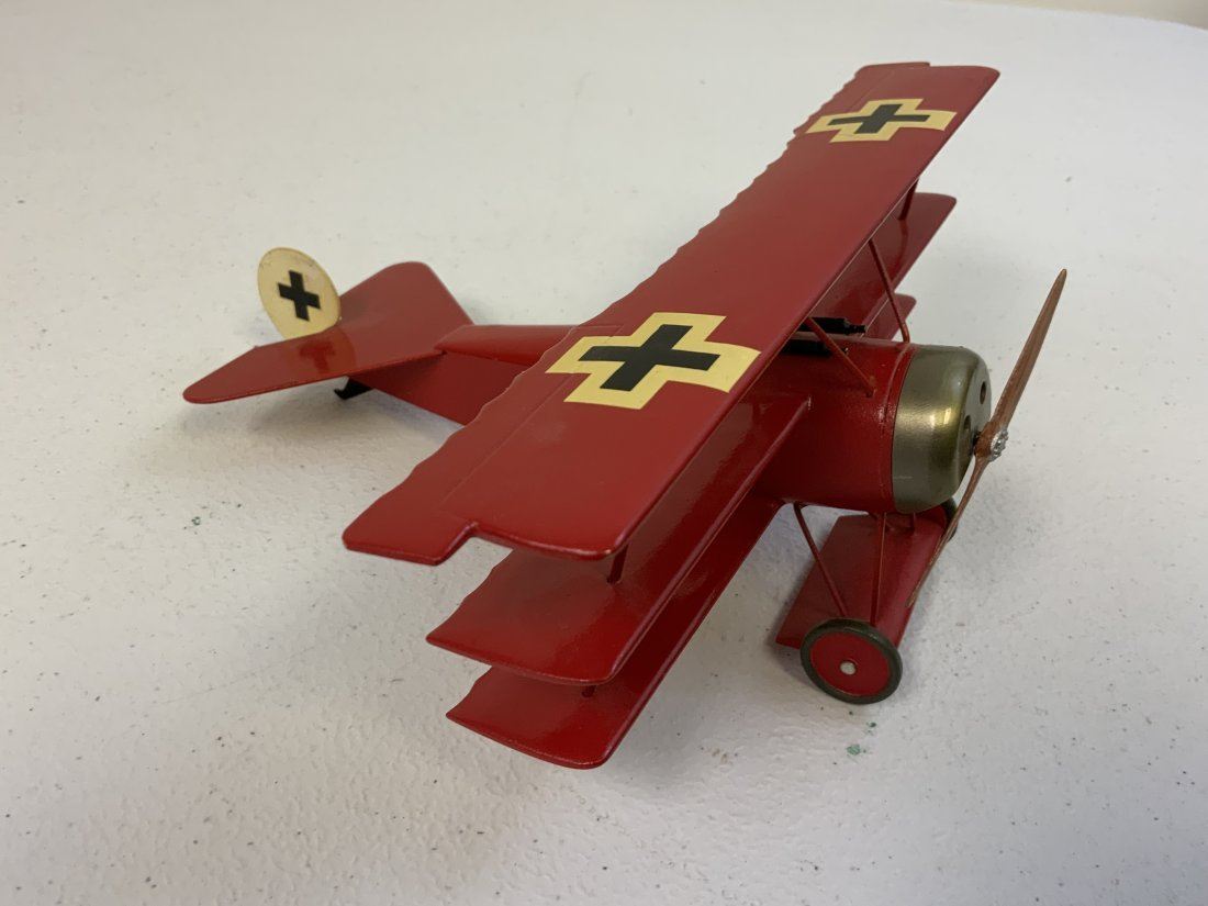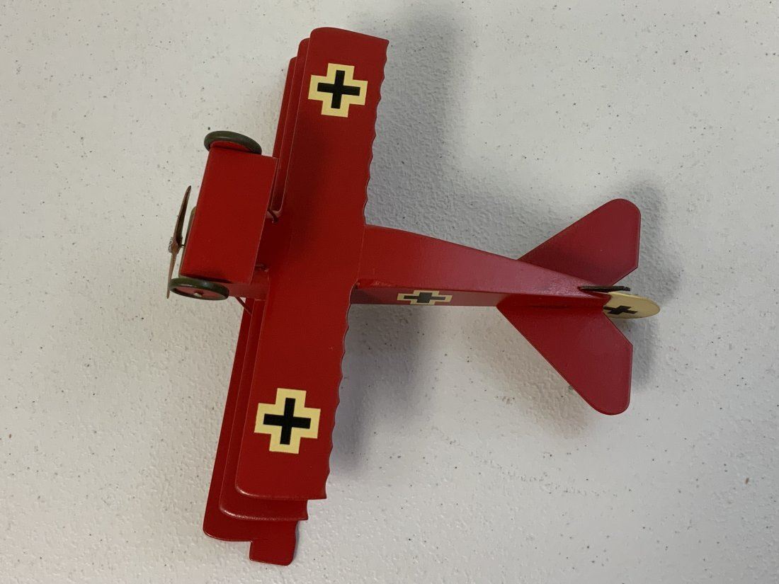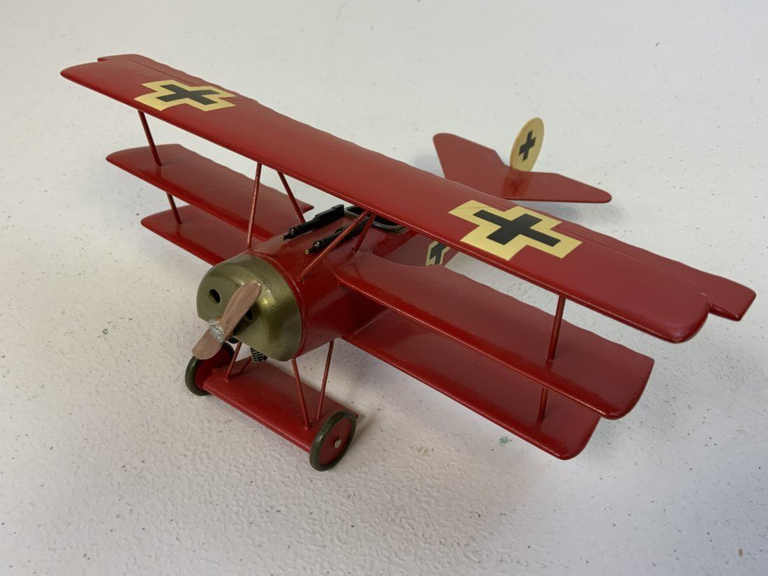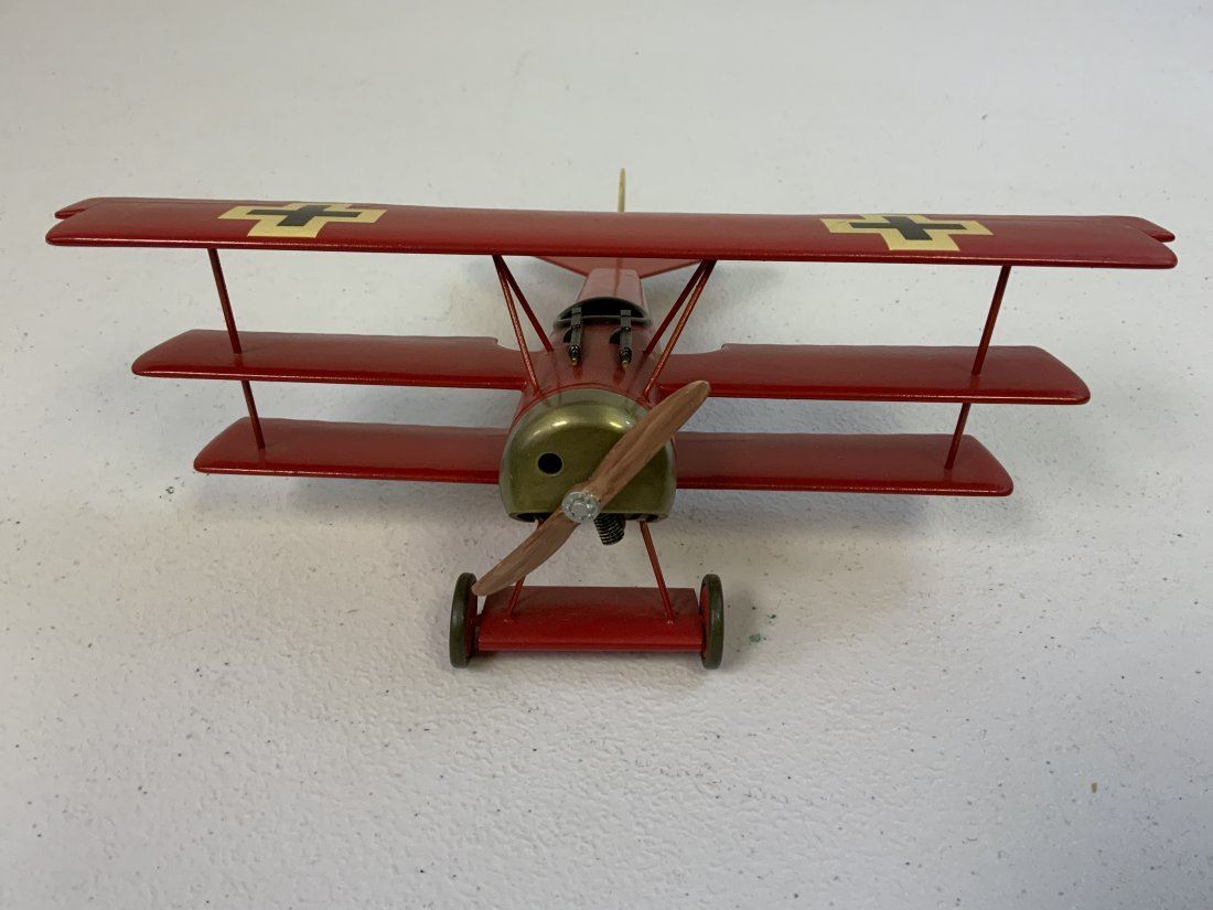 THE RED BARONS FOKKER DR.1. TRIPLANE DISPLAY MODEL . NICE WOODEN MODEL . 7" LONG WITH 9" WING SPAN AND ABOUT 4" HIGH. GREAT DISPLAY PIECE.
