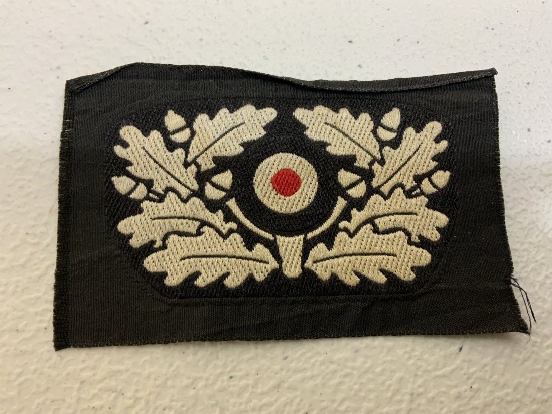 THIRD REICH GERMANY ARMY PANZER BERET WREATH INSIGNIA . BEVO WOVEN PATCH . MINT CONDITION. UNUSSED . RARE .