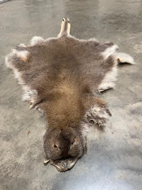 Beautiful, Soft, and Tanned WALLABY Hide with its Head and Tail. It measures 53" Long x 24" Wide (at the widest point). TAXIDERMY HIDES AND TAXIDERMY DECOR