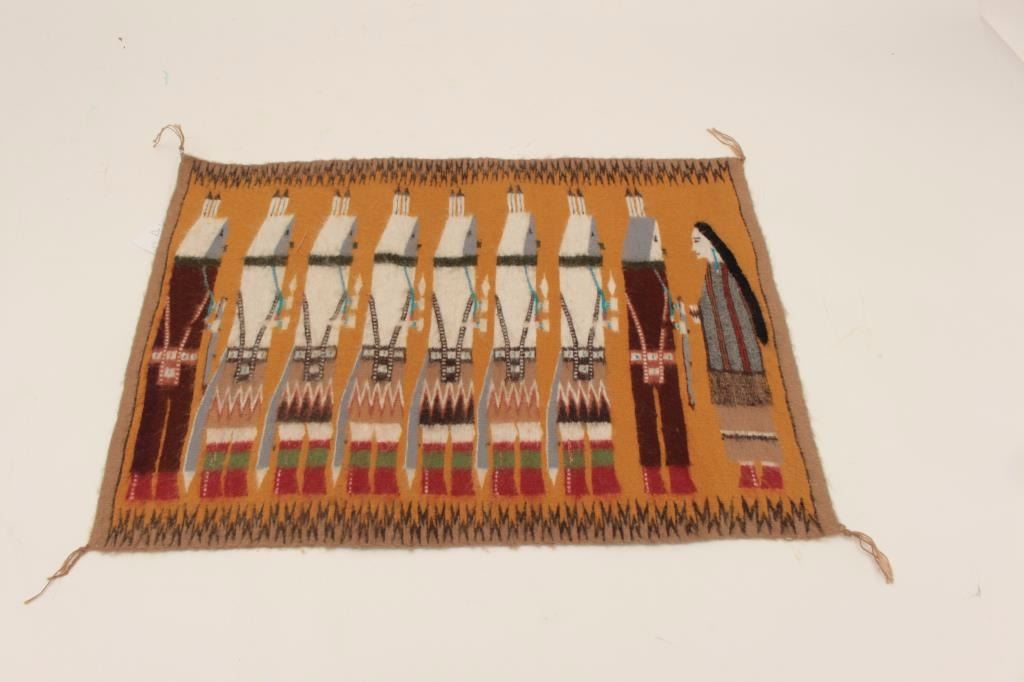 Tapestry quality “Yei” rug; blue face corn dancers. From the estate of Elmer E. Taylor. Est.: $150-$300.