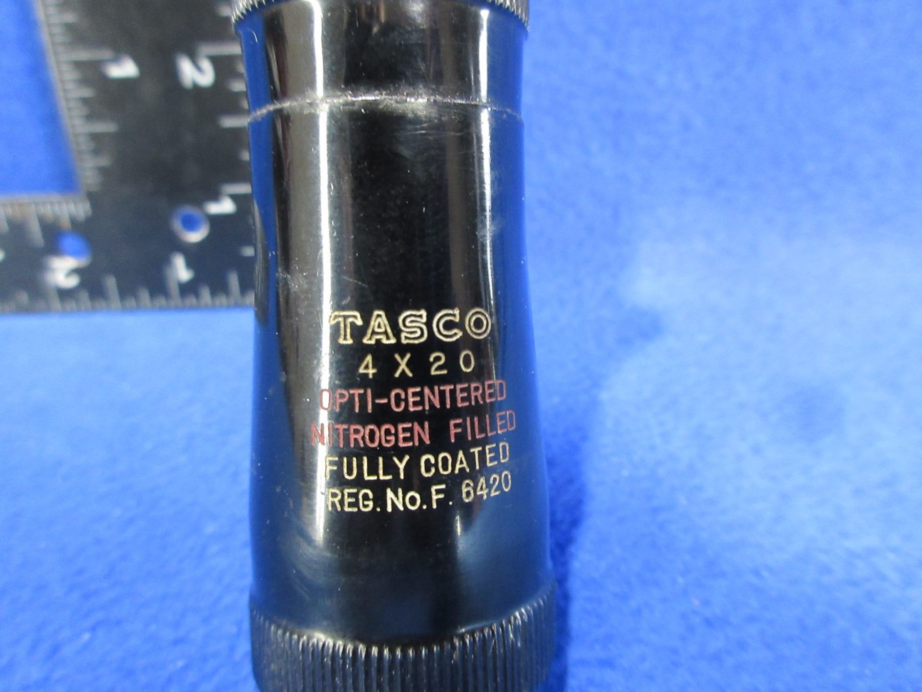 Tasco 4x20 Riflescope with .22 Style Mount - Appears Clear - Fine Crosshair - Turret Caps are Missing