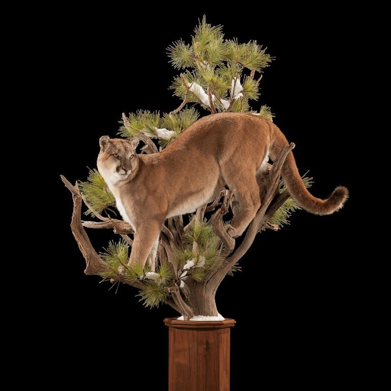 This donation is the taxidermy services for a life size animal of choice similar in size to a wild sheep, leopard or grizzly bear & includes custom hardwood display base with a realistic habitat scene.