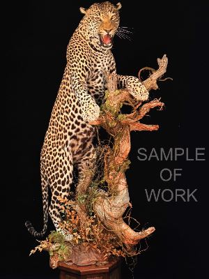 When you entrust your African collection to Jamie Flewelling and the talented artists at World Champion Legends Taxidermy Studios, your trophies will receive the full attention and expertise of the entire studio from start to finish. Legends is proud to announce the generous donation of their taxidermy services to create a custom, one-of-a-kind, life-size leopard mount. This extraordinary piece will feature a meticulously crafted habitat scene and one of Legends' exceptional handcrafted hardwood bases, resulting in a breathtaking display worthy of one of Africa's most magnificent cats. With over 30 years of innovation, artistry, and uncompromising attention to detail, Legends has helped clients craft their trophies into awe-inspiring works of art. As a long-time supporter of Safari Club International, Legends Taxidermy continues to demonstrate its dedication to the hunting community and its enduring commitment to honoring and preserving the beauty of wildlife. For more information, contact Jamie Flewelling with Legends Taxidermy at 231-757-9589. Visit the Company's website: www.legendstaxidermy.com.