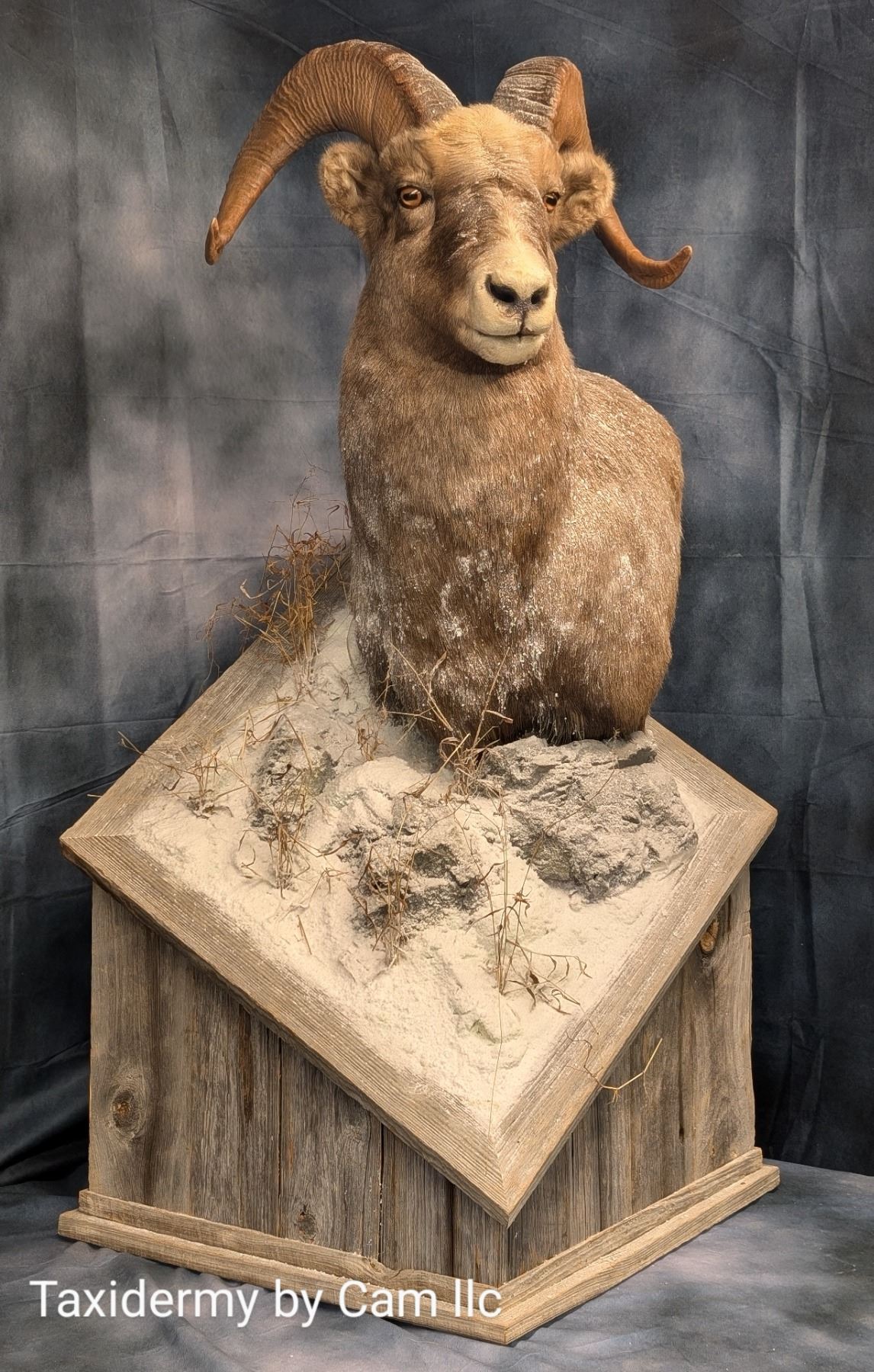 This donation is for the taxidermy of a life-size Stone Sheep or Dall or Desert Bighorn or Rocky Mountain Bighorn.