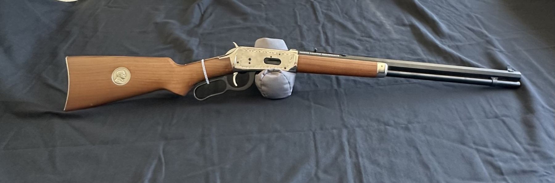 This year we choose two Winchester Model 94 Teddy Roosevelt Commemorative 30-30 Rifles in consecutive Sereal Number order to make it more special. One being a Carbine and the other a rifle. They honor Teddy Roosevelt with being the 26th President and served from 1901-1909. Also have his signature on the bottom by the trigger guard. Octagon barrels and saddle rings as where the original Winchester rifles back then.